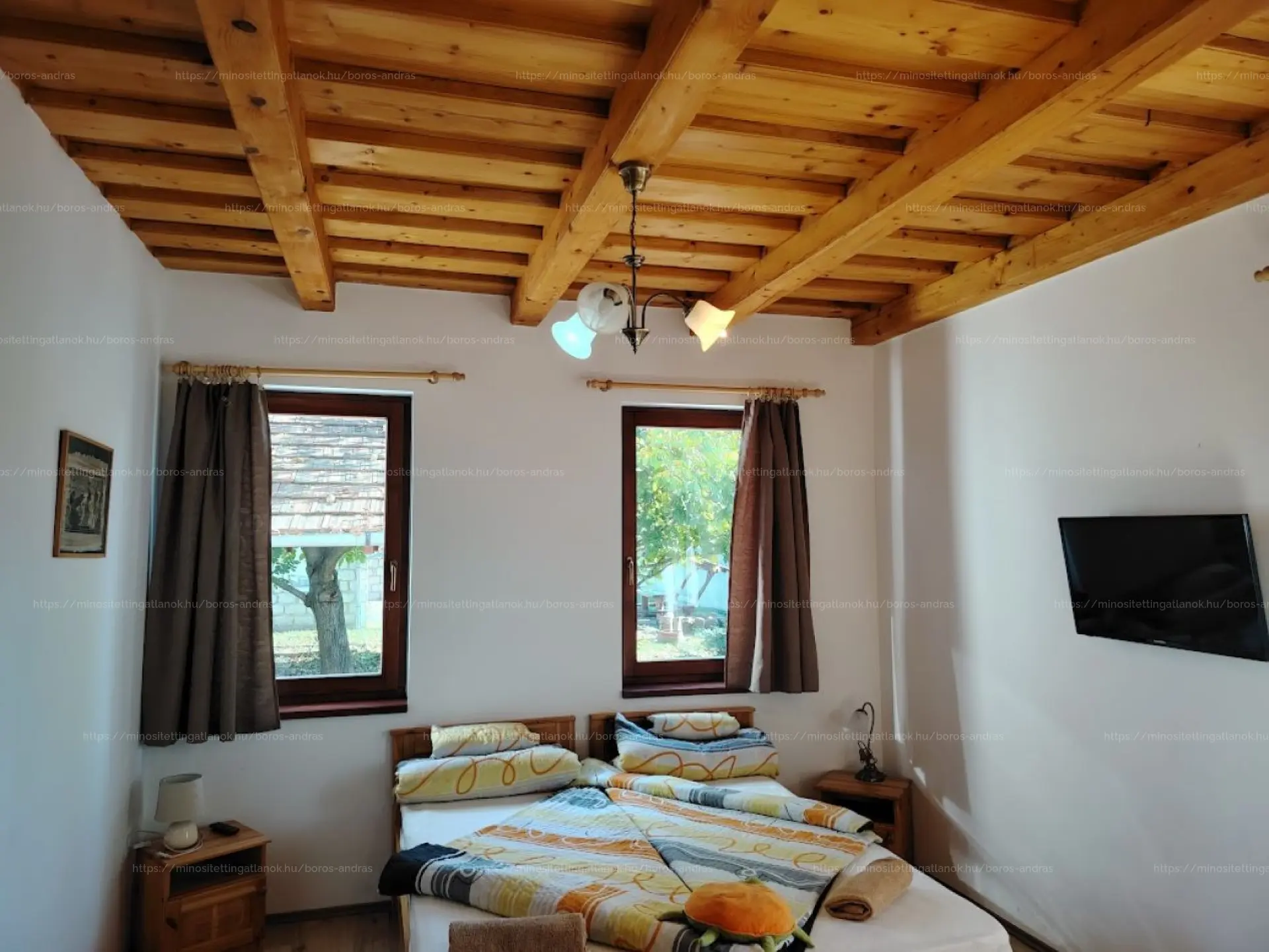 ✅Das Äußere des Hauses, die Holzbalkendecken im Erdgeschoss, die Holzverkleidung im Dachgeschoss und die Holzmöbel verleihen dem Haus einen rustikalen Charakter.