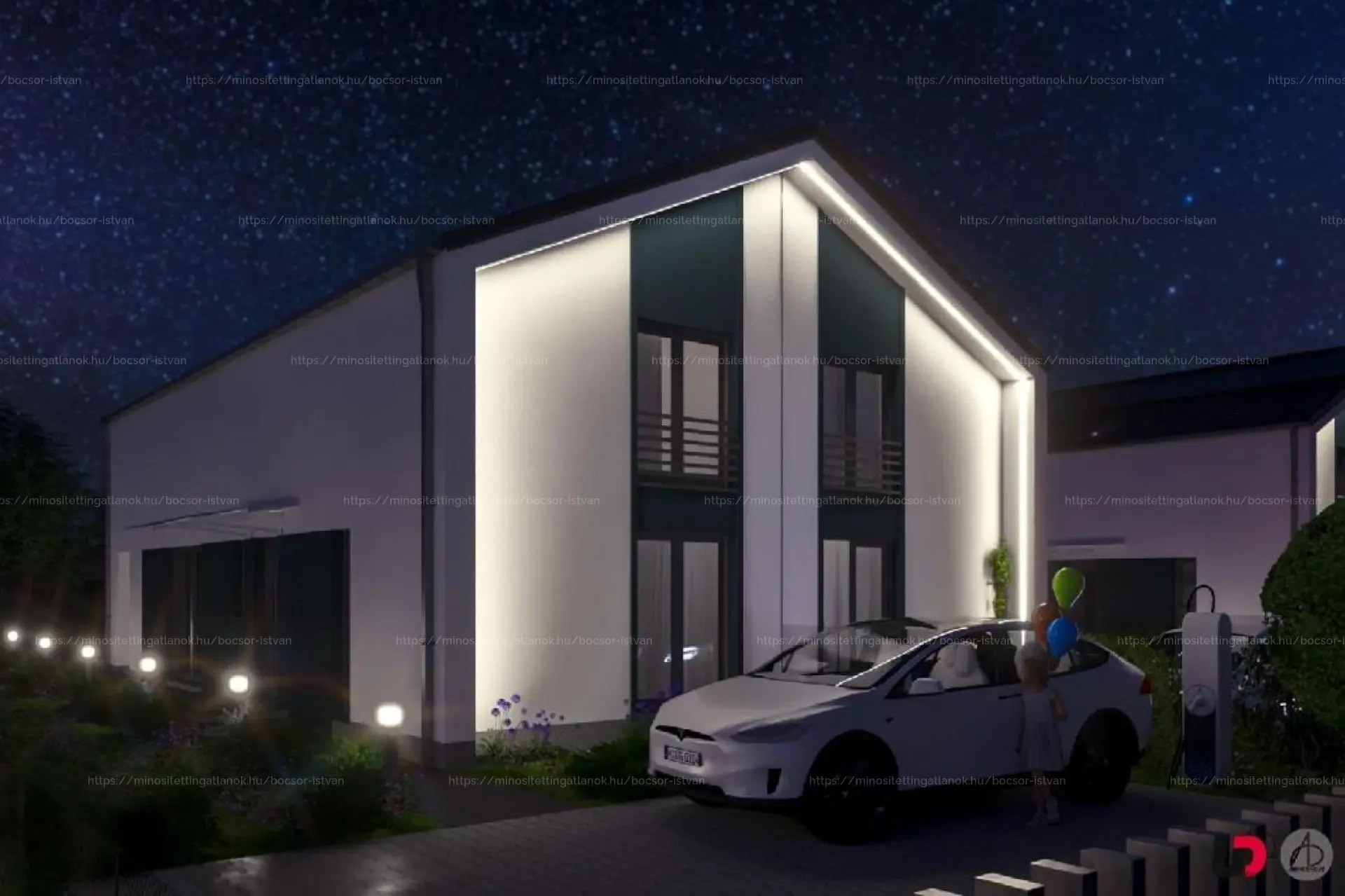 Fejér vármegyében, Besnyő településen, egy 450 m²-es telken kerül kivitelezésre ez a 117 m²-es, kétszintes ikerház, amely a modern otthonok kényelmét és a korszerű műszaki megoldásokat ötvözi.