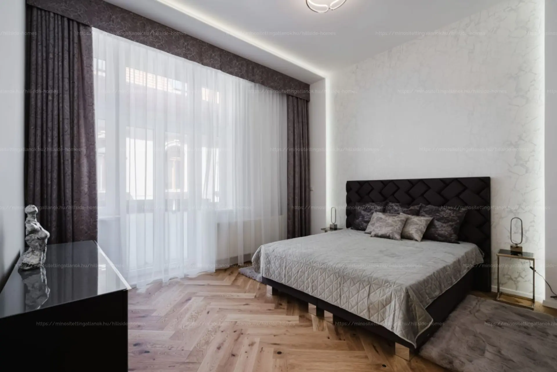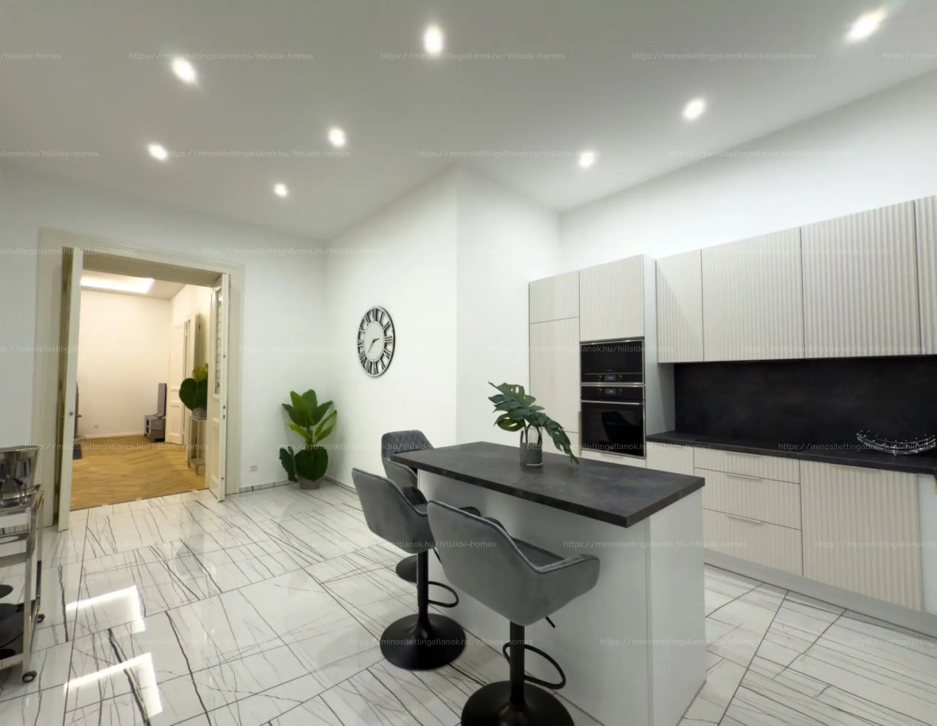 Az ingatlan egy szépen karbantartott, neoreneszánsz stílusú, 1880-as évekből származó társasház harmadik emeletén található, amely történelmi bájával és időtálló eleganciájával méltó keretet ad ennek a modern, prémium színvonalú lakásnak. A világos nappali ablakai csendes mellékutcára néznek, így a város közepén is nyugodt, otthonos hangulat uralkodik. Mindkét hálószoba saját fürdőszobával rendelkezik, a főhálóhoz ráadásul egy tágas gardróbhelyiség is kapcsolódik. Külön vendégmosdó és egy háztartási/gépészeti helyiség is segíti a praktikus mindennapokat. A gázcirkó fűtés energiatakarékos és hatékony megoldást nyújt a téli hónapokban. A közös költség 42.000 Ft havonta, amely tartalmazza a víz- és csatornadíjakat is.