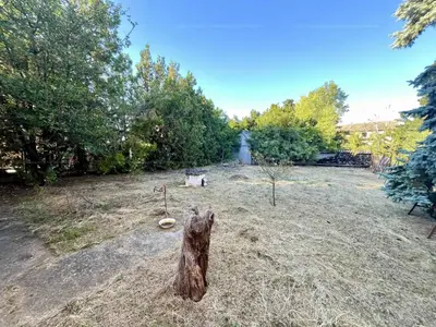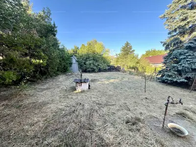 A telek 431 nm-es, összközműves, kerti csap, locsolásra alkalmas fúrt kút, gyümölcsfák (meggy, körte), fenyők, és egy kis szerszámtároló található rajta.