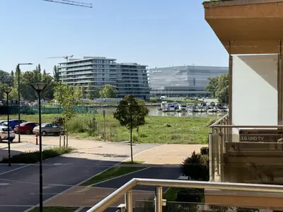 Kiadó újszerű 35 m²-es lakás 10 m²-es terasszal a XIII. kerületben, Marina Parton, a Duna Terasz Prémium társasházban. Az 1. emeleti otthon a Foka-öbölre néző, fedett nagy teraszáról közvetlenül élvezhető a a dunai panoráma, míg a lakás kisforgalmú, csöndes sétálóutcára tekint.