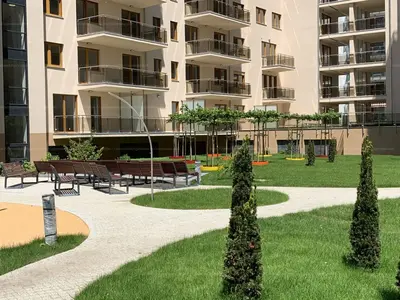 A praktikus elrendezésű garzonból közvetlen kijárat nyílik a fedett erkélyre. A lakás légkondicionált: a konyhában tűzhely, sütő, hűtő, mosogatógép, a zuhanyzós fürdőben mosógép áll rendelkezésedre. A lakásban jelenleg azok a bútorok találhatóak, amik a képen szerepelnek, de igény esetén bebútorozza a tulajdonos.