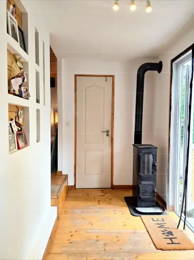 Fűtése vaskandallóval és hűtő-fűtő klímával megoldott.