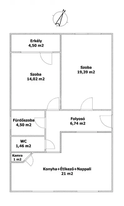A lakás 2 egész és 1 félszobás, praktikus elosztással: