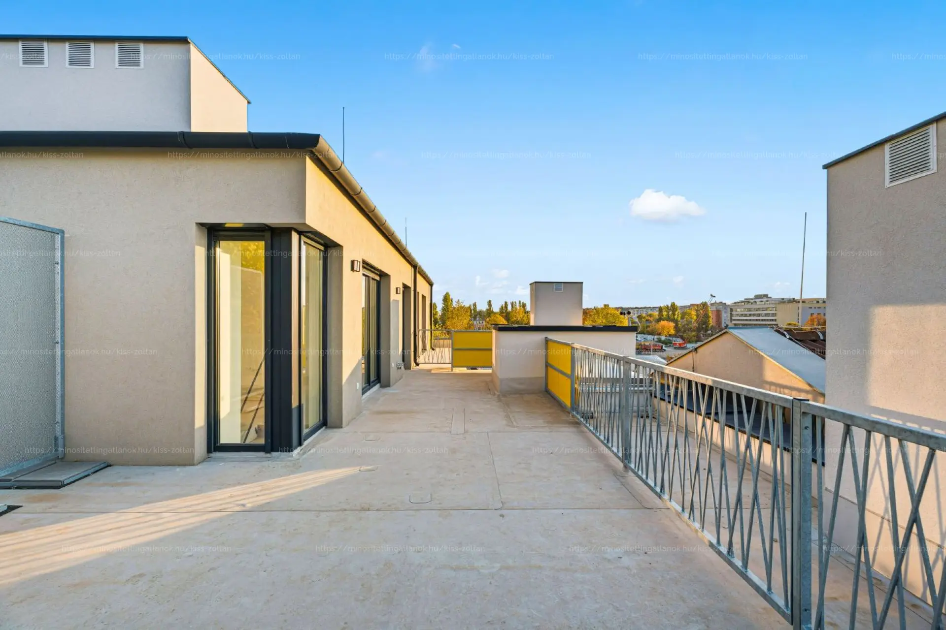 Budapest XI. kerületének dinamikusan fejlődő részén, a Kalotaszeg utcában kínálom megvételre ezt a modern, kétszintes, 108 m²+ 77 m²(terasz) alapterületű, háromszobás lakást, amely a harmadik és negyedik emeleten helyezkedik el, Észak-Kelet-Nyugat tájolással.