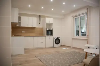 Budapest XII. kerületében, a Kissvábhegy aljában, bauhaus ház földszintjén eladó egy 60 m²-es, igényesen kialakított otthon, ahol az amerikai konyhás nappali két külön nyíló hálószobával és két fürdőszobával egészül ki.
