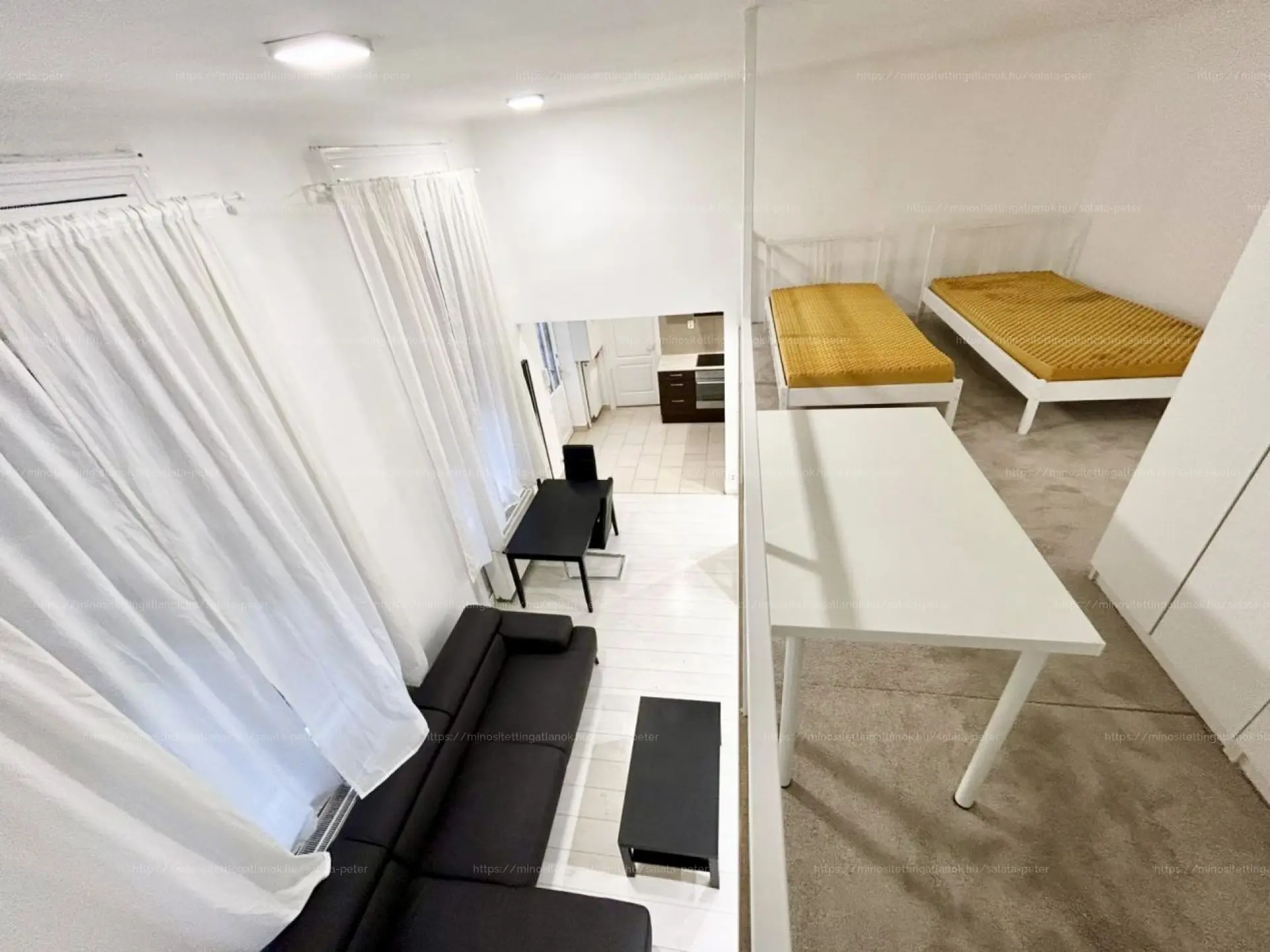 1 + 1 SZOBA található az ingatlanban, melyből az egyik galériázott. A galéria alatt és felett a belmagasság 1,9 m. TELJESEN BÚTOROZOTT és GÉPESÍTETT (mosogatógép is). A képen még nem látható, de új kanapé került az ingatlanba.