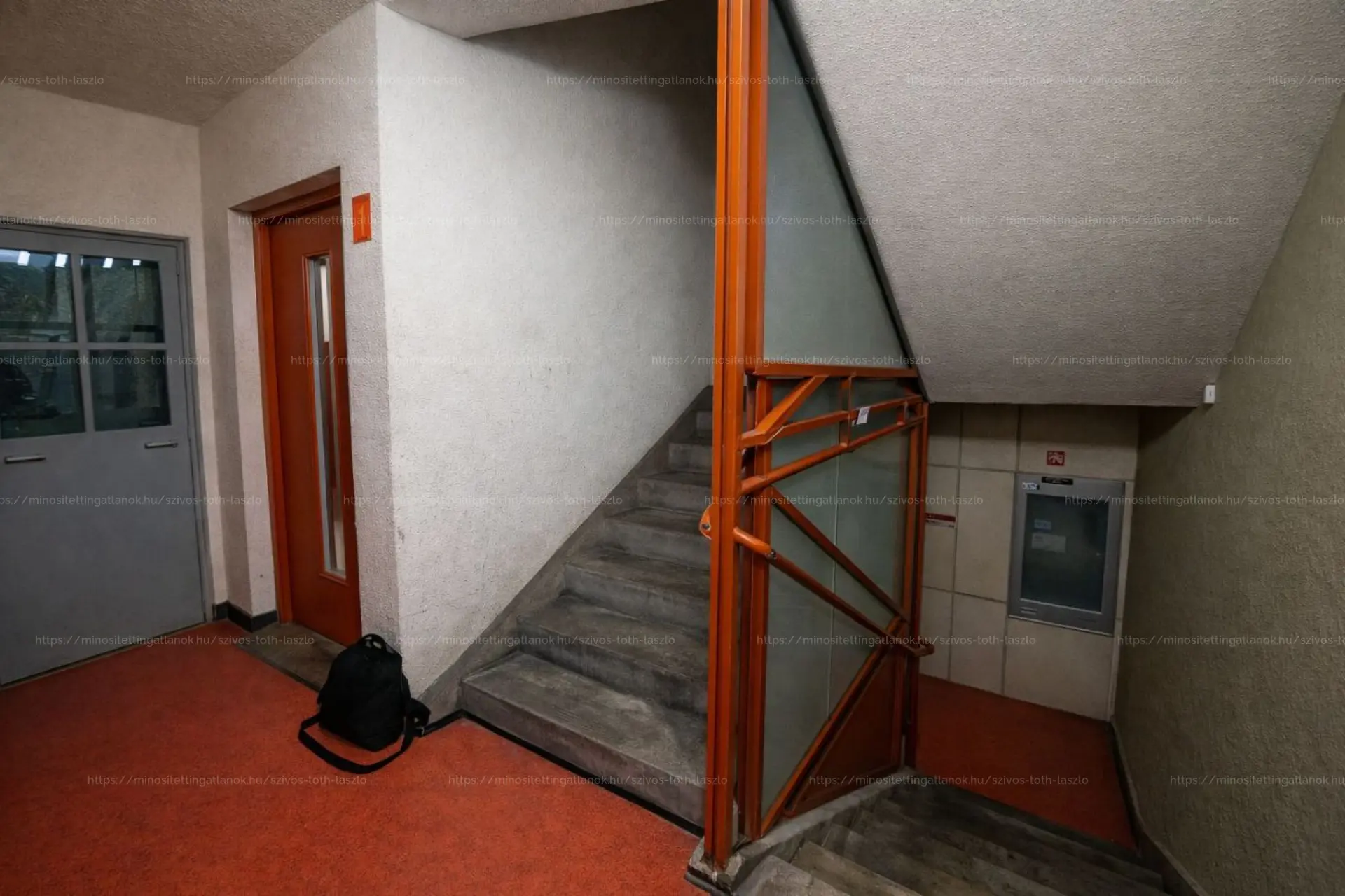 A lépcsőház jó állapotú, tiszta, zárt, kaputelefonos rendszerrel nyitható. További előnye, hogy minden szinten kettő lakásonként zárható a folyosó. A házban két hívólift van, melyből az egyik a szomszéd lépcsőházból közelíthető meg a földszinten és a 7. emeleten. A folyosón központi szemétledobó is rendelkezésre áll. A parkolás az épület köré kialakított parkolóban ingyenes. A lakás rezsi- és közös költsége alacsony.