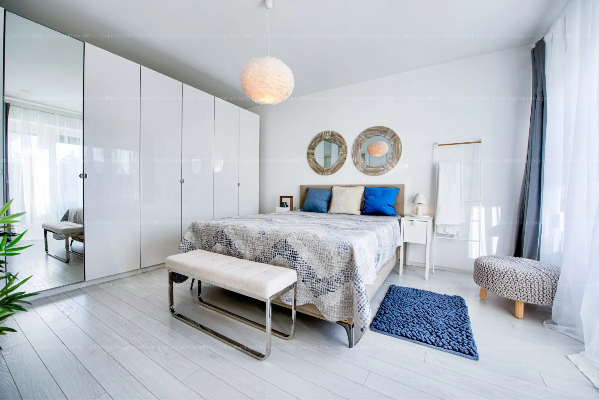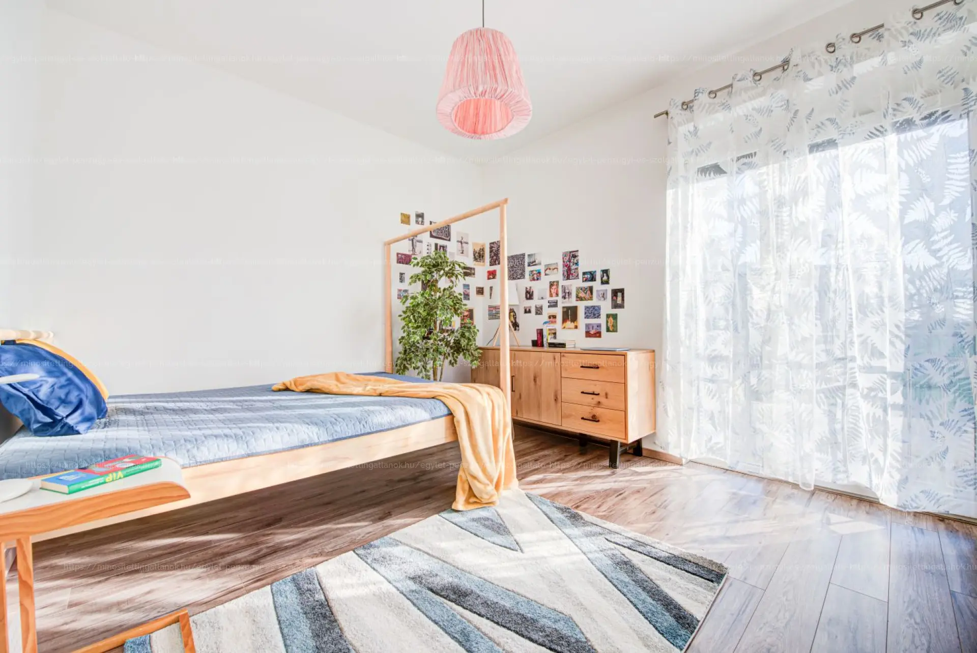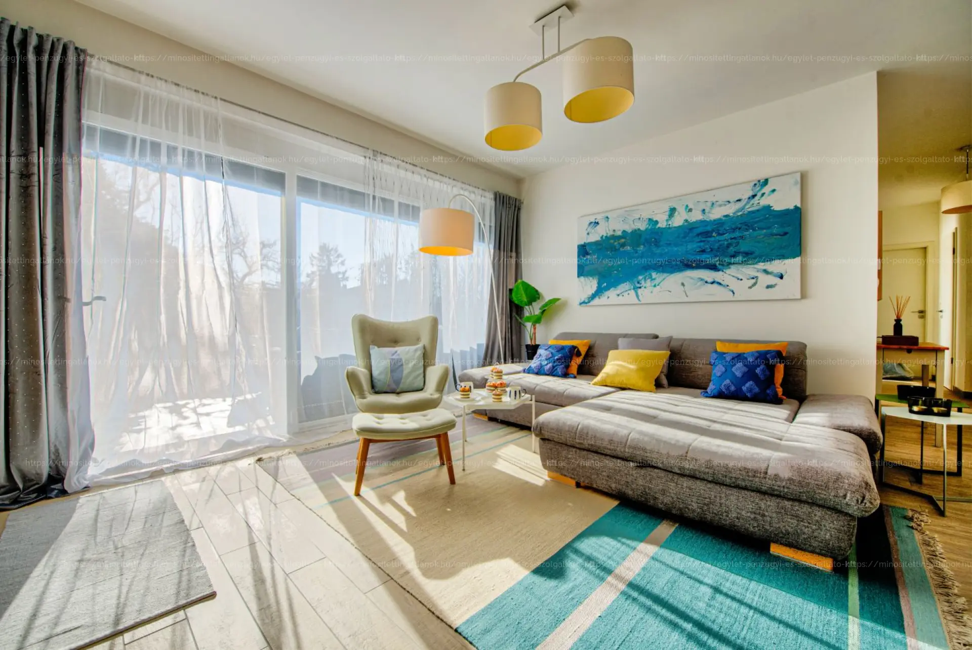 Budaörs szívében a Kápolnás-hegy lábánál, csendes aszfaltozott utcában, 116 m2-es, nappali + 3 hálószoba elrendezésű lakás, igényes új tulajdonosát várja. A 2018-ban épített mindössze 3 lakásos, kétemeletes szigetelt téglaépület földszintjén elhelyezkedő társasházi lakás impozáns 31 m2-es teraszkapcsolattal rendelkezik. A terasz területe részben sincs beszámítva a tulajdoni lapon található hasznos alapterületbe. Az újszerű lakás elrendezése élhető, az intim és a közösségi terek jól elkülönülnek egymástól. A komfortfokozat duplakomfort, hiszen a szülői és a gyermek lakrész is rendelkezik fürdőszobával, WC-vel. A szobák laminált parkettával, míg a többi helyiség járólappal burkolt. A ház fűtését és melegvíz ellátását kondenzációs gázkazán látja el, a túlmelegedés ellen saját split klíma véd, a biztonságról távfelügyeletre kötött riasztórendszer gondoskodik. A közös költség 20.000 Ft, a fűtésátalány mindössze 11.000 Ft. Az esztétikus konyhabútor és a beépített szekrények a vételár részét képzik. A lakáshoz tartozik egy mélygarázsi beálló, melynek értéke további 10.000.000 Ft és kötelezően megvásárlandó. Az ingatlan tehermentes, piaci hitellel hitelezhető, de vételára miatt az Otthon Start Programban nem tud részt venni. A környék közlekedése és infrastruktúrája jó: közlekedési csomópont 6 perc sétára, bölcsöde szintén 6 percre, iskola, óvoda 15 percen belül elérhető gyalogosan, bevásárlóközpont 10 percnyire gépkocsival. Mindent összevetve, ez az igazán „beleszeretős”, nívós lakás igazi otthont nyújt minden korosztálynak, akinek fontos a csend, a rendezett, nyugodt, biztonságos környezet, és fontosak a jószomszédi kapcsolatok. A hirdetéshez csatolt fotók, 3D séta, illetve videó megtekintését követően a felmerülő kérdések kapcsán felkészülten várom hívását a hét minden napján.