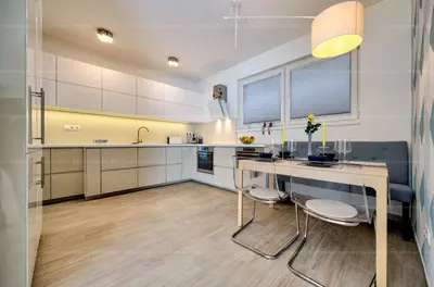 Budaörs szívében a Kápolnás-hegy lábánál, csendes aszfaltozott utcában, 116 m2-es, nappali + 3 hálószoba elrendezésű lakás, igényes új tulajdonosát várja. A 2018-ban épített mindössze 3 lakásos, kétemeletes szigetelt téglaépület földszintjén elhelyezkedő társasházi lakás impozáns 31 m2-es teraszkapcsolattal rendelkezik. A terasz területe részben sincs beszámítva a tulajdoni lapon található hasznos alapterületbe. Az újszerű lakás elrendezése élhető, az intim és a közösségi terek jól elkülönülnek egymástól. A komfortfokozat duplakomfort, hiszen a szülői és a gyermek lakrész is rendelkezik fürdőszobával, WC-vel. A szobák laminált parkettával, míg a többi helyiség járólappal burkolt. A ház fűtését és melegvíz ellátását kondenzációs gázkazán látja el, a túlmelegedés ellen saját split klíma véd, a biztonságról távfelügyeletre kötött riasztórendszer gondoskodik. A közös költség 20.000 Ft, a fűtésátalány mindössze 11.000 Ft. Az esztétikus konyhabútor és a beépített szekrények a vételár részét képzik. A lakáshoz tartozik egy mélygarázsi beálló, melynek értéke további 10.000.000 Ft és kötelezően megvásárlandó. Az ingatlan tehermentes, piaci hitellel hitelezhető, de vételára miatt az Otthon Start Programban nem tud részt venni. A környék közlekedése és infrastruktúrája jó: közlekedési csomópont 6 perc sétára, bölcsöde szintén 6 percre, iskola, óvoda 15 percen belül elérhető gyalogosan, bevásárlóközpont 10 percnyire gépkocsival. Mindent összevetve, ez az igazán „beleszeretős”, nívós lakás igazi otthont nyújt minden korosztálynak, akinek fontos a csend, a rendezett, nyugodt, biztonságos környezet, és fontosak a jószomszédi kapcsolatok. A hirdetéshez csatolt fotók, 3D séta, illetve videó megtekintését követően a felmerülő kérdések kapcsán felkészülten várom hívását a hét minden napján.