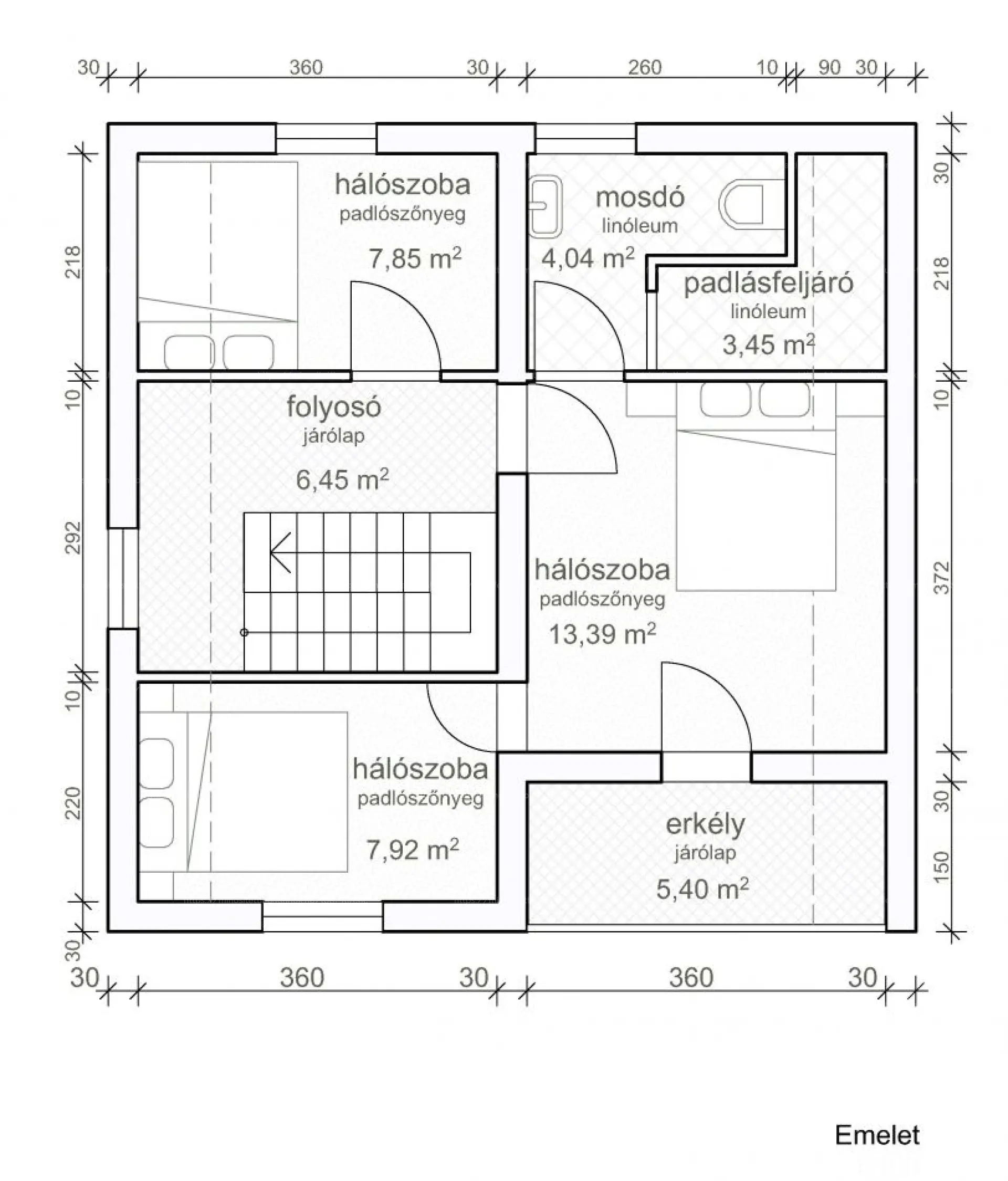 - az alsó szinten zuhanyzós fürdőszoba, wc található, a felső szinten egy wc mosdóval, de lehetőség van egy zuhanyzó beépítésére