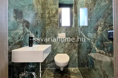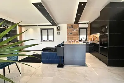 50.000 Ft/nm áron vásárolt járólapok, 1M Ft-os faldekor elemek. Beépített spotlámpák, mennyezeti dekor dizájn, magas minőségű beltéri ajtók. 3 rétegű Kömerling antracit ablakok, elektromos redőnnyel és külső zsalúziával.