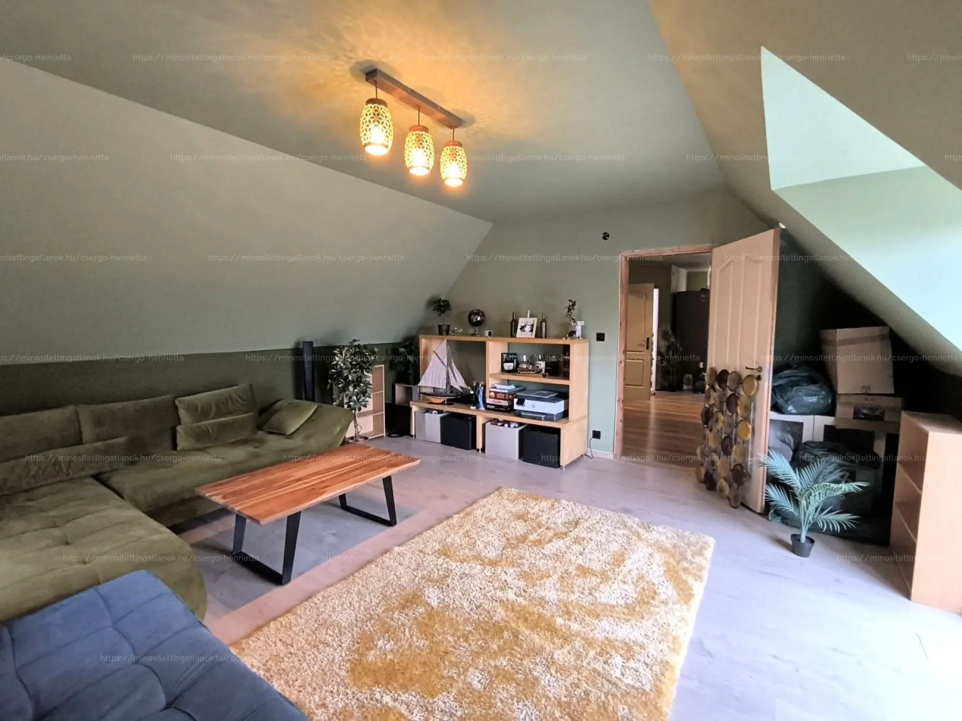 A lakáshoz tartozik egy 89 m²-es, lekerített, térkövezett autóbeálló, amely akár két gépjármű kényelmes parkolását is lehetővé teszi. A padlás tárolásra, pakolásra kiválóan alkalmas.
