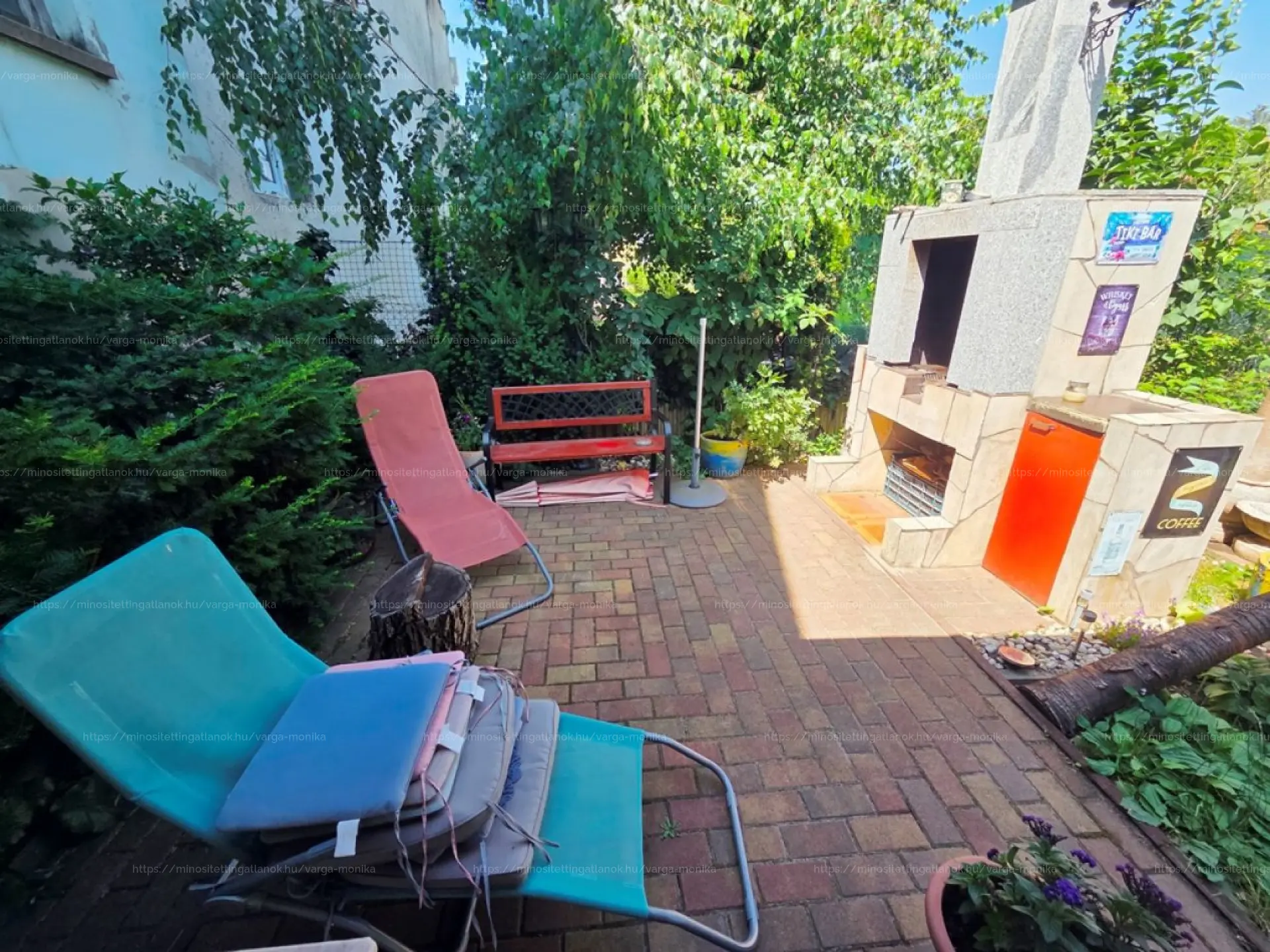 A 587 m²-es telken fekvő kert és előkert automata locsolórendszerrel könnyen gondozható. A ház mögötti dupla terasz kiváló helyszín családi vagy baráti összejövetelekre, amelyet grillező és kerti csap is kiegészít. A kertben többféle termő gyümölcsfa található, így nemcsak szép, hanem finom élményeket is kínál. Az ingatlanhoz tartozik egy 30 m²-es pince, valamint egy különálló 6 m²-es faház, amelyek praktikus tárolási lehetőségeket biztosítanak.