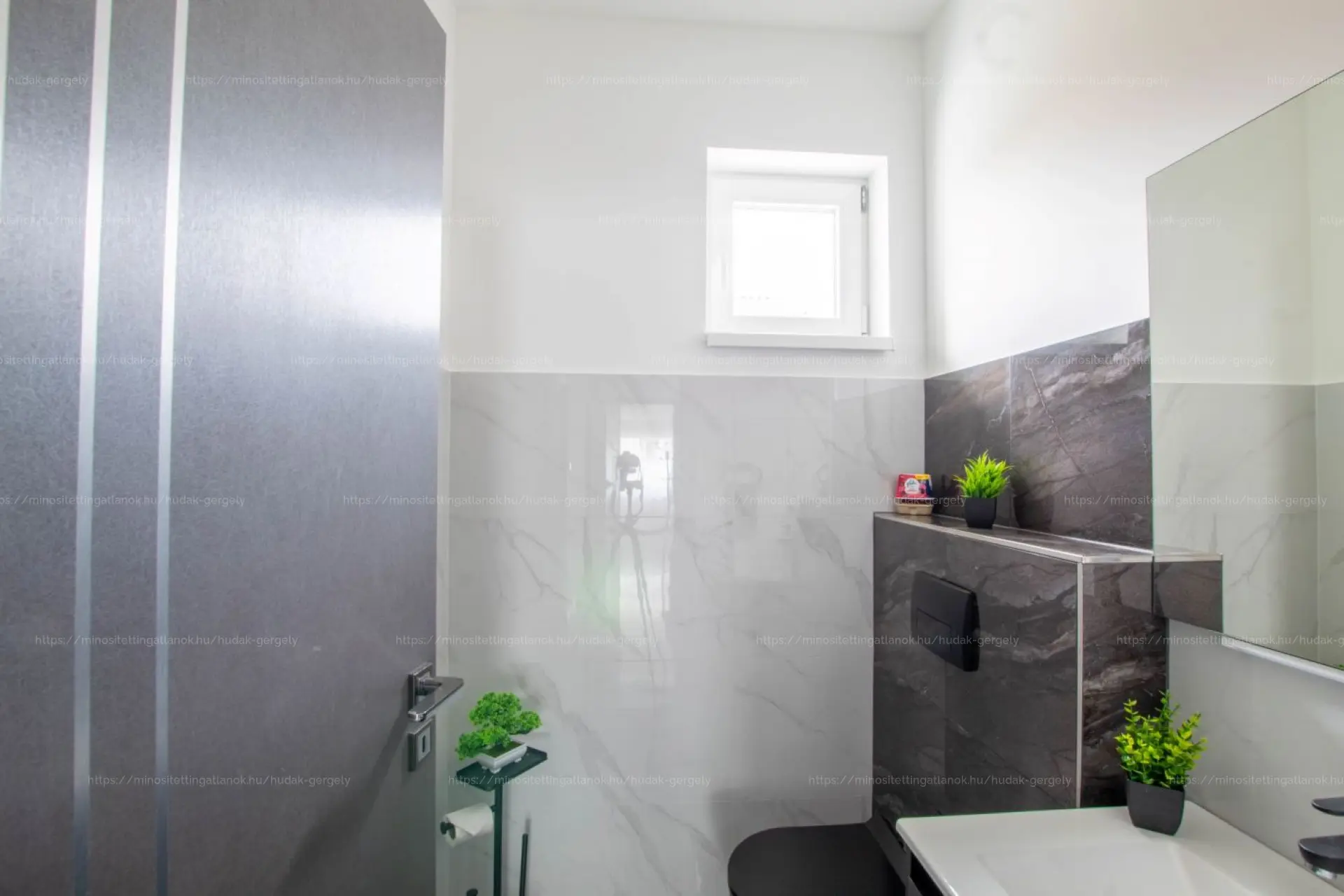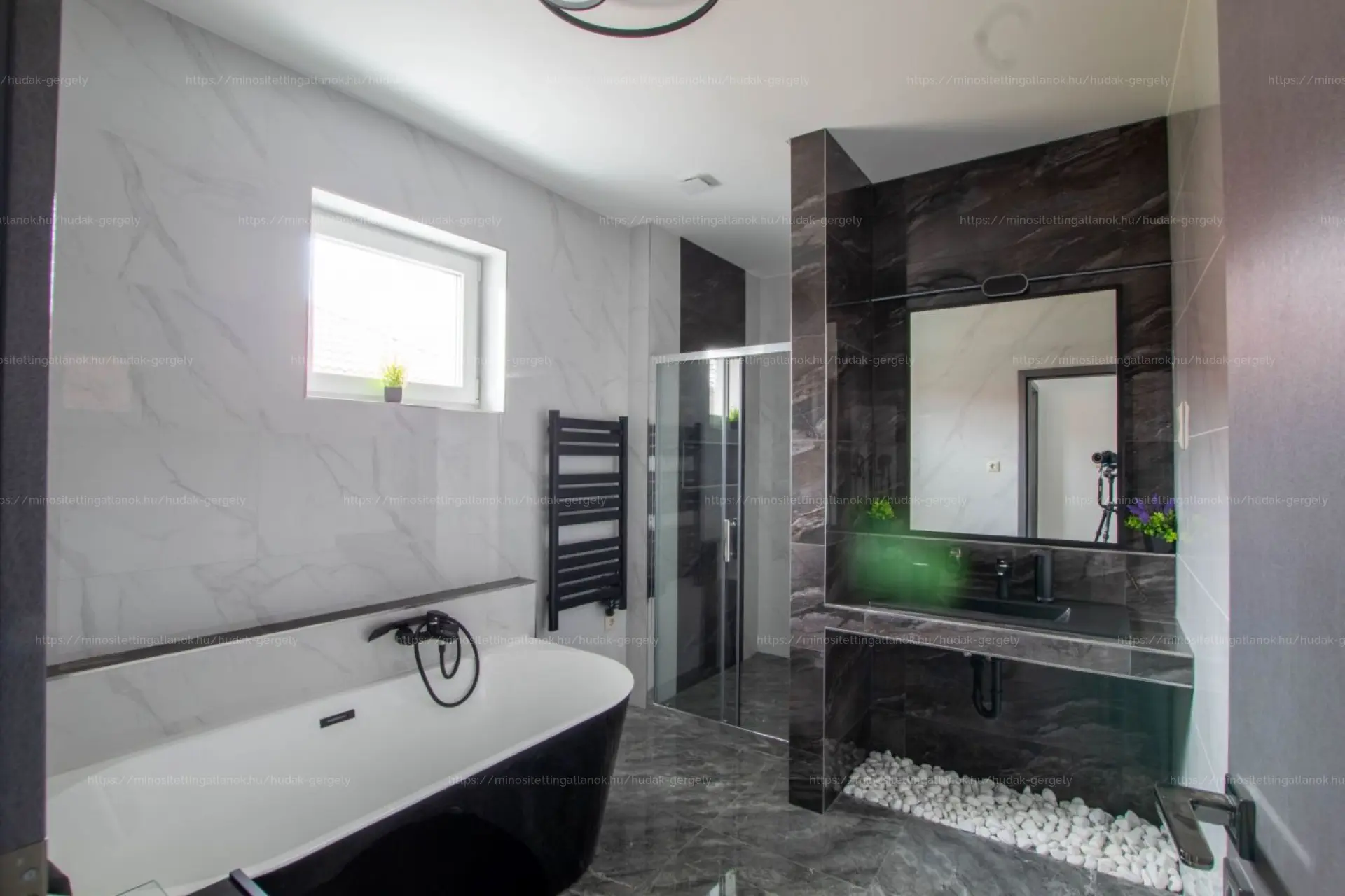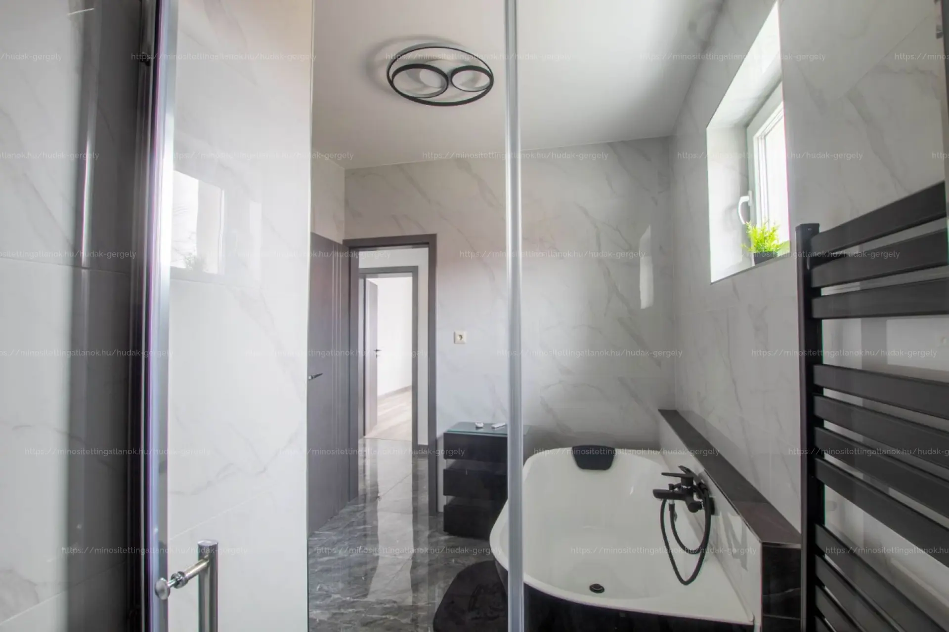 A fürdőben fürdőkád és épített zuhanyzó is helyet kapott. A fürdőben és a kamrában is mosógép bekötési lehetőség van.