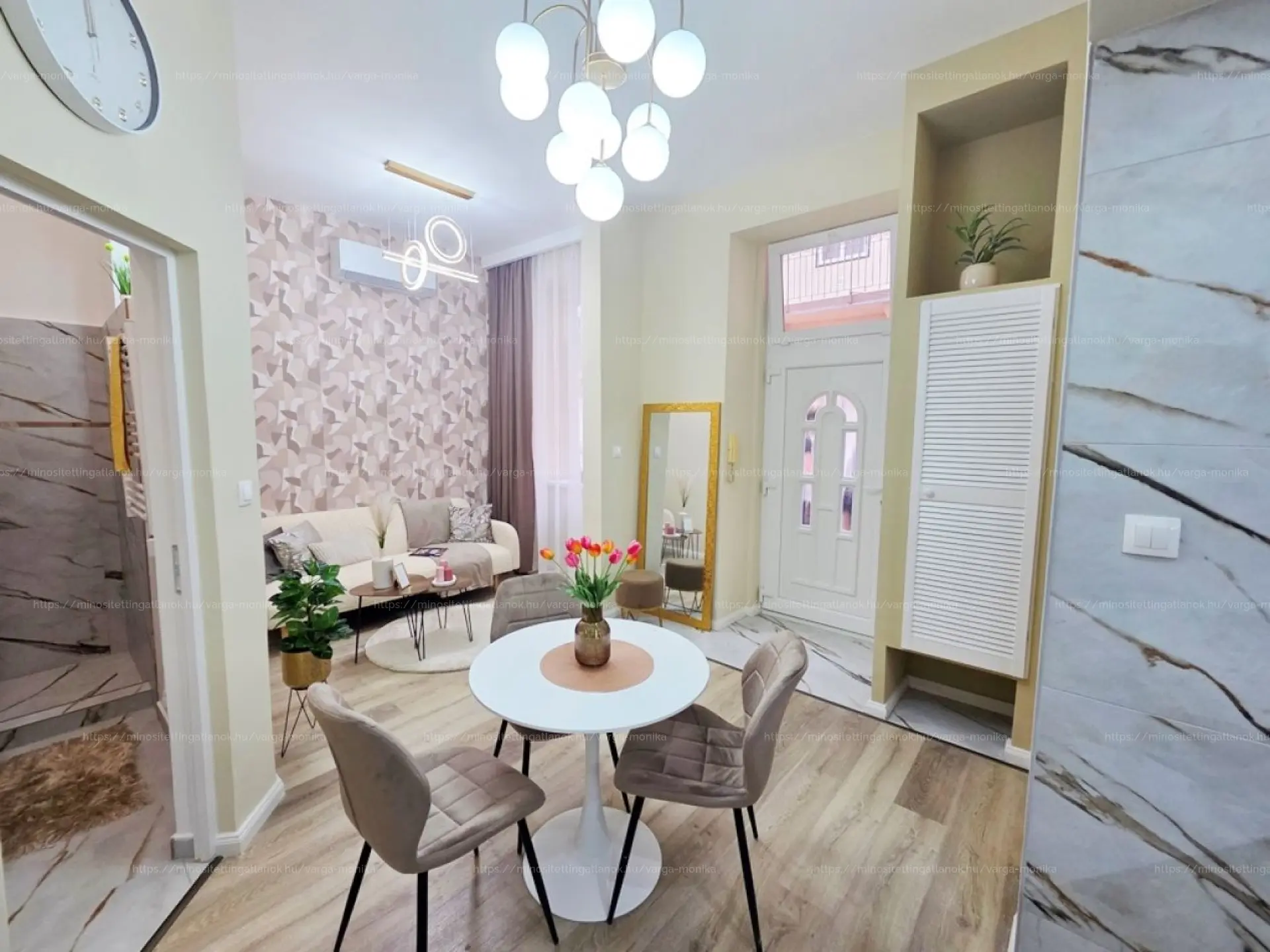 A VII. kerületben, a közkedvelt Klauzál téren kínálok megvételre egy 1+1 szobás, 40 m²-es, teljes körűen felújított, első emeleti, udvari nézetű, délnyugati fekvésű, polgári stílusú társasházi lakást. Az épület az 1900-as évek elején épült, 3 szintes, lift nélküli, kívül-belül jó állapotban van, lépcsőháza tiszta, a lakóközösség csendes, kulturált. A lakás 3,3 méteres belmagassággal rendelkezik. A fűtést modern elektromos infrapanel és hűtő-fűtő klíma biztosítják, a meleg víz ellátásáról villanybojler .Az ingatlan bútorzattal eladó, a beépített konyhabútor és a gépek is a vételár részét képezik. A kivitelezés saját részre, egyedi stílusban történt, ennek köszönhetően az enteriőr meleg, nyugodt, otthonos hangulatot áraszt. A közös költség mindössze 16.200 Ft/hó, amely tartalmazza a korlátlan vízfogyasztást, a szemétszállítást, a közös helyiségek takarítását és világítását, a házbiztosítást, valamint a felújítási alapot is. A rezsiköltség az egyedi mérőóráknak köszönhetően alacsony.