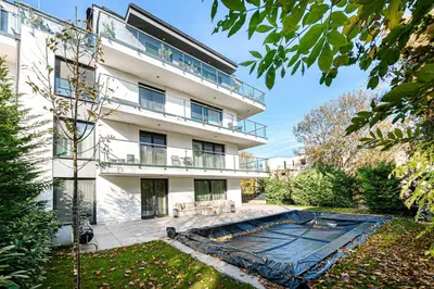🌅 A 2020-ban épült, elegáns otthon 316 nm-es saját kerttel és medencével várja új tulajdonosát. A tágas nappali és minden hálószoba közvetlen teraszkapcsolattal rendelkezik, így a lakás minden pontjáról élvezhető a természet közelsége.