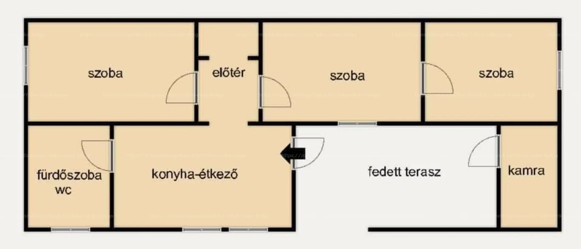 A lakóépület 61 m²-es, 3 szobával, konyhával, fürdőszobával és más praktikus helyiségekkel rendelkezik. A TÉGLA alapra épített 50 cm vert és VÁLYOG falazat remek HŐTARTÓ tulajdonságokkal bír. SZÁRAZ az épület, most is lakott, télen-nyáron komfortosan használható.