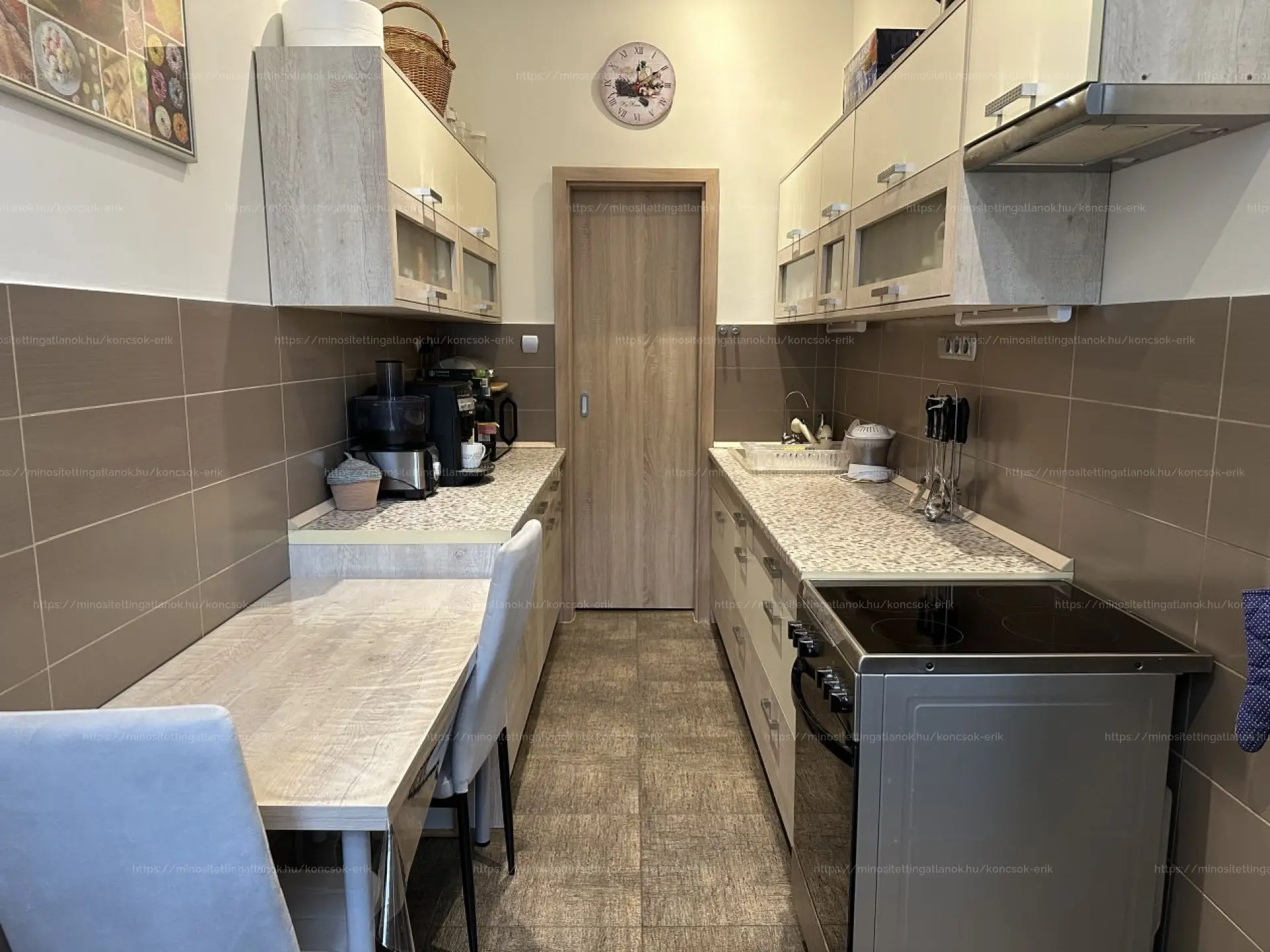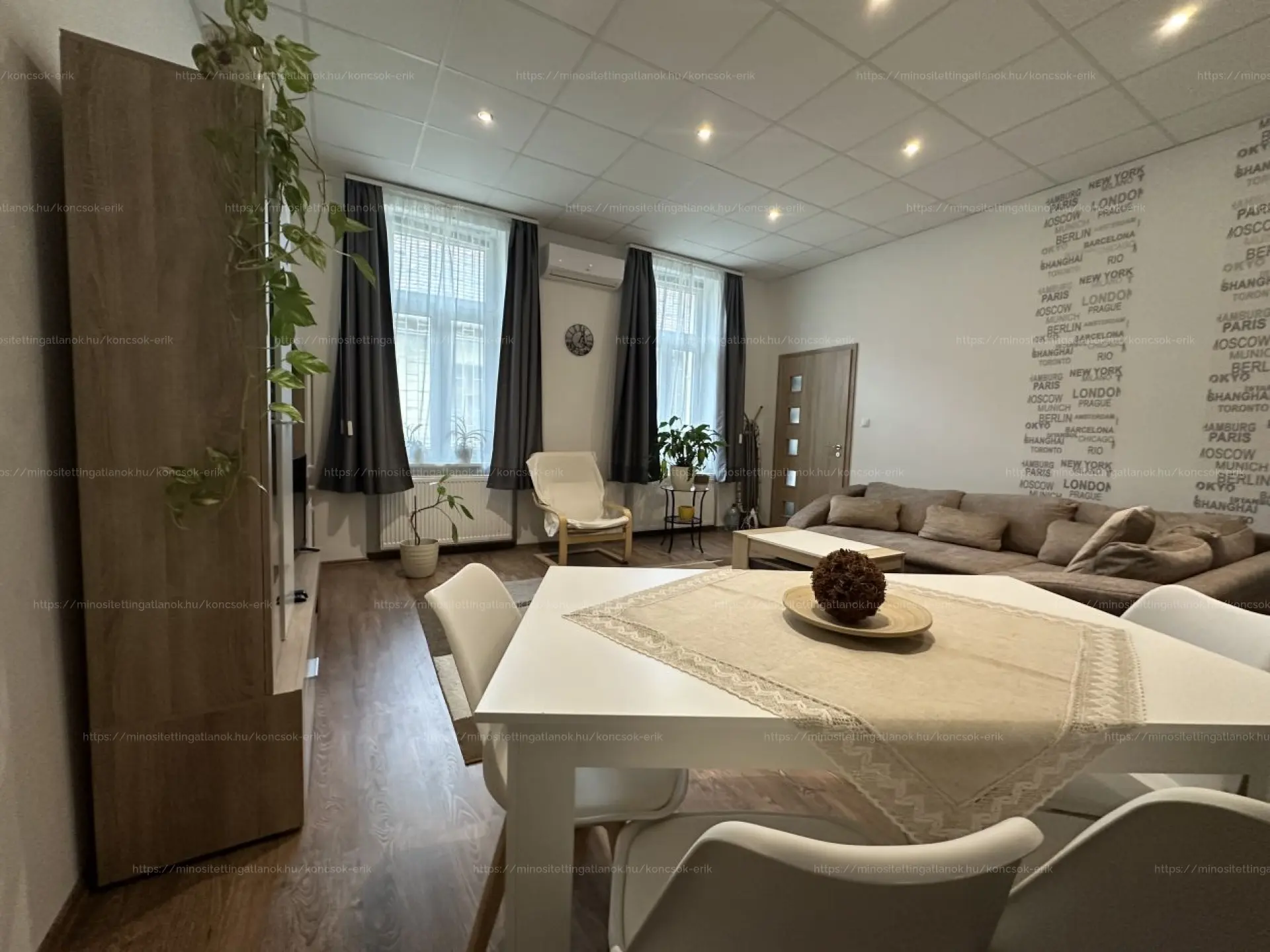 A LAKÁS: 10 évvel ezelőtt teljes körűen felújították. Egészen a vakolatig vissza bontva, minden vezetéket, nyílászárókat kicseréltek. Igényesen kialakított konyha, fürdőszoba. Esztétikus burkolatok.A fűtés, meleg víz ellátás,gáz cirkó készülékkel megoldott. Minden helyiség ablakkal ellátott, a kamra is. A szobák napfényesek, világosak. Mindkét szobában klíma került felszerelésre.