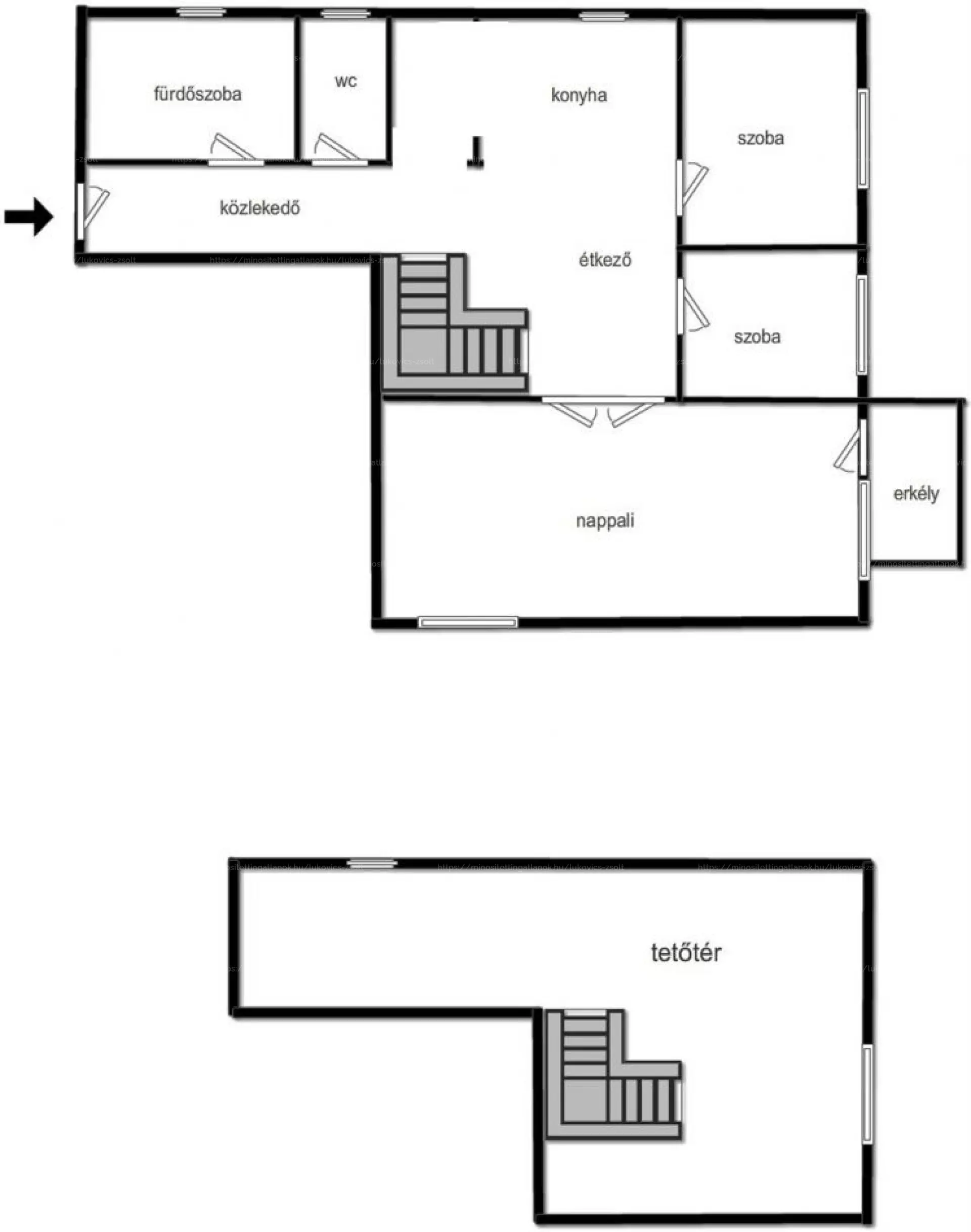 - a lakáson belül található második szint, + bruttó: 28nm / nettó: 13nm