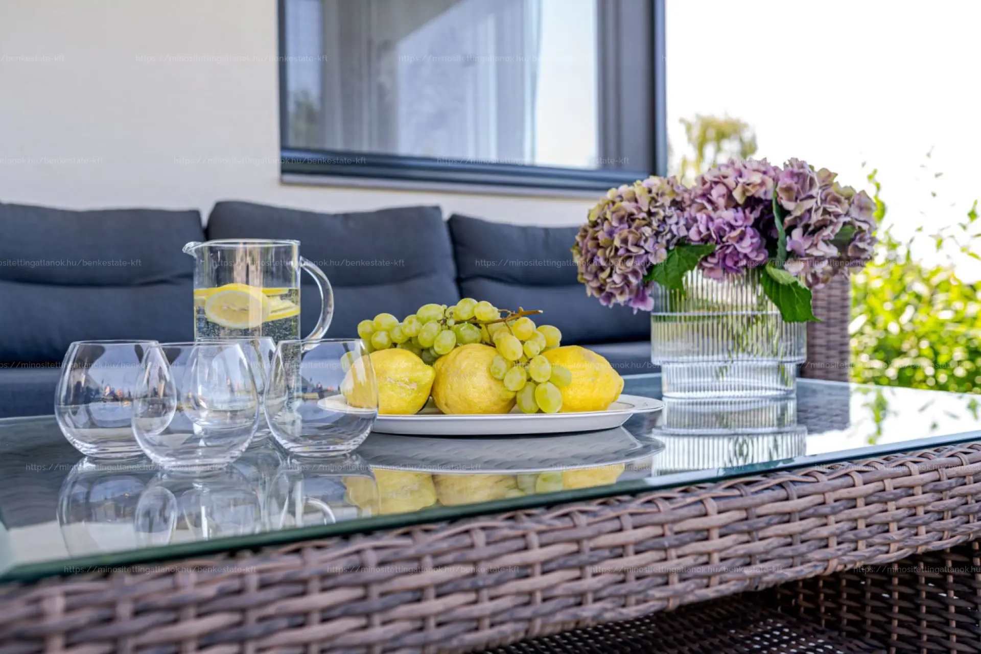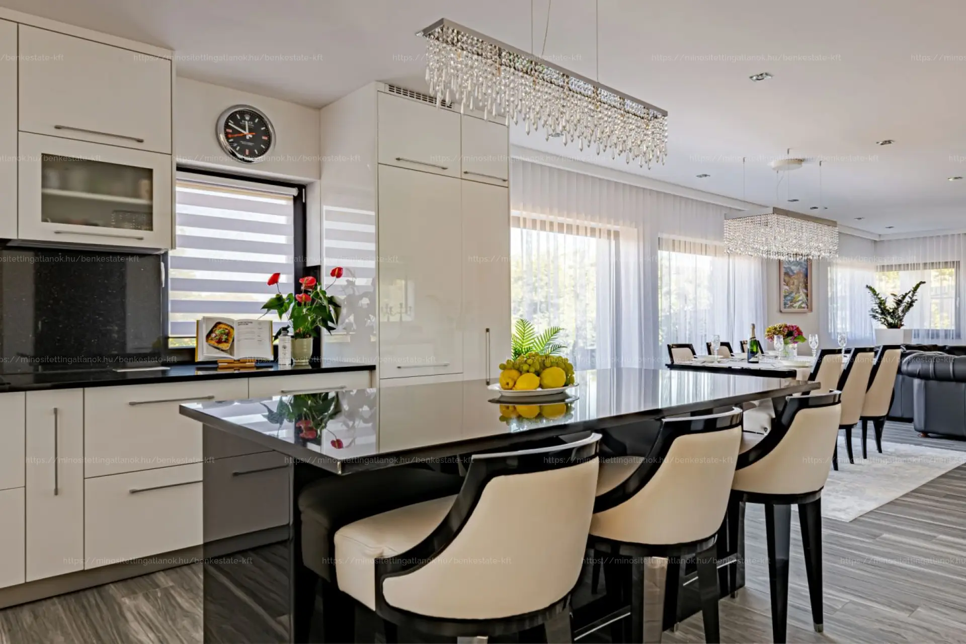 A ház vételárát képezi a ház teljes bútorzata is, ahogy a képeken látszik, a teljesen felszerelt konyha garanciális high-tech gépekkel, kerti konyha, jakuzzi és kondi eszközök is. Önnek csak a bőröndöket kell hoznia!