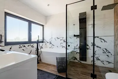 A 2022-ben épült ház egyedi tervezésű, saját részre épült minimalista stílusban a legmagasabb minőségű anyagok és legújabb technológiák felhasználásával.