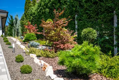 Nem csak a ház gondosan átgondolt és megtervezett, hanem annak kertje is. A kertész által megálmodott, automata öntözőrendszerrel karbantartott magazinba illő kert minden évszakban csodaszép.