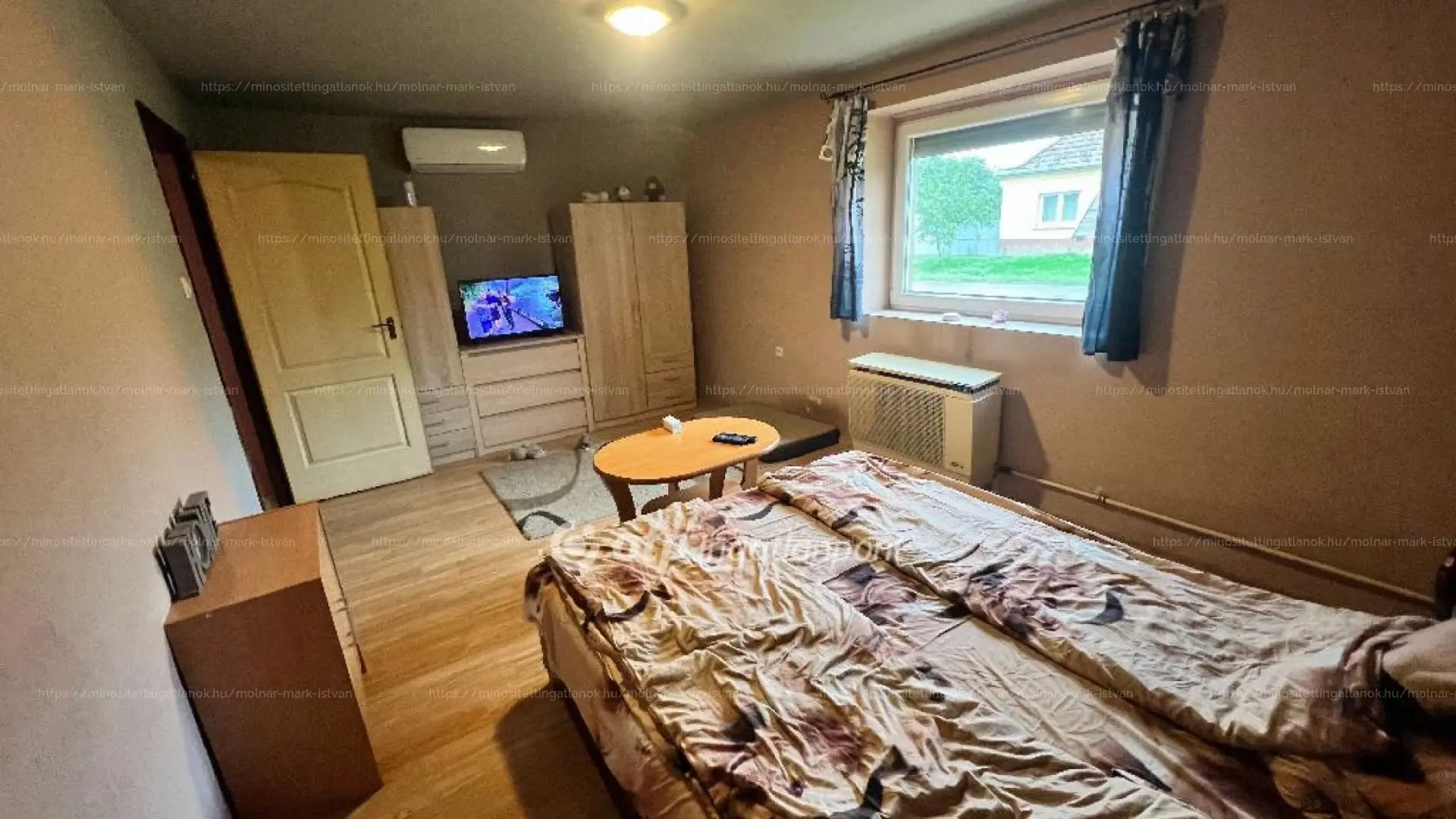 Elrendezés és műszaki állapot: Az ingatlan elrendezése: egy szoba, konyha, fürdő és WC, valamint egy másik szoba, amely jelenleg felújítás alatt áll. A tulajdonos részleges felújítást végzett: a nyílászárók HŐSZIGETELTEK, az elektromos hálózat újra lett húzva. 32 amperes áramellátás biztosítja az energiaellátást, ami az elektromos bojlernek, valamint a hűtő-fűtő KLÍMÁNAK is megfelelő; a klíma okos otthon támogatással rendelkezik. A ház BIZTONSÁGÁT kamerarendszer növeli. Fűtés: A fűtés megoldható a klímán kívül egy darab gázkonvektorral, valamint egy kisebb kandallóval. Kiegészítő épületek és telek: A telken több MELLÉKÉPÜLET található: garázs, fa tároló és műhely, melyek szintén új elektromos hálózattal lettek ellátva.
