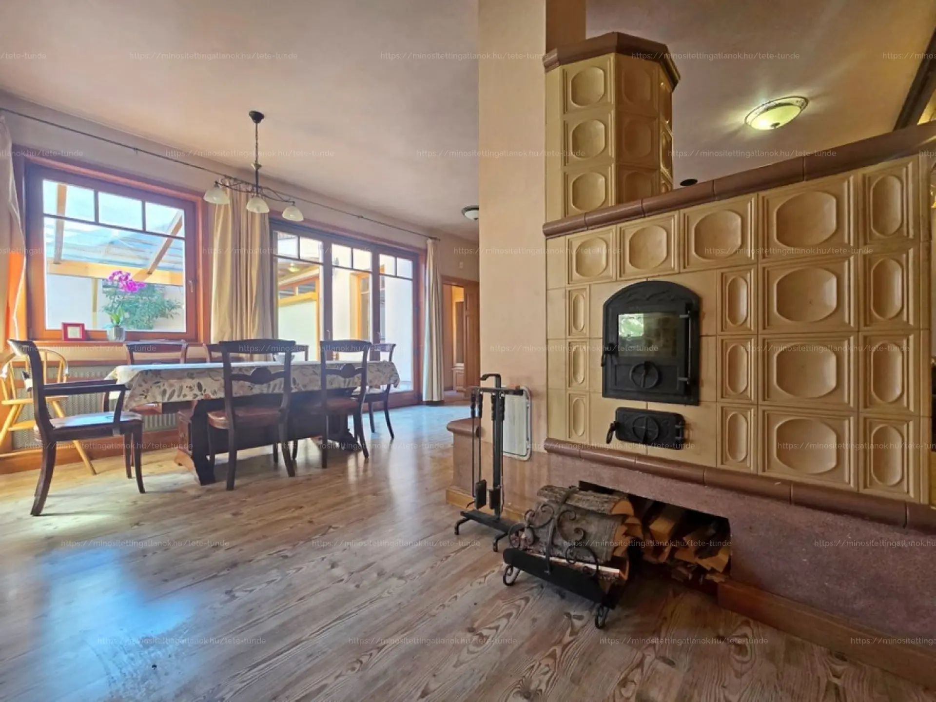 • a gyönyörű cserépkályha a hangulatos nappali része;