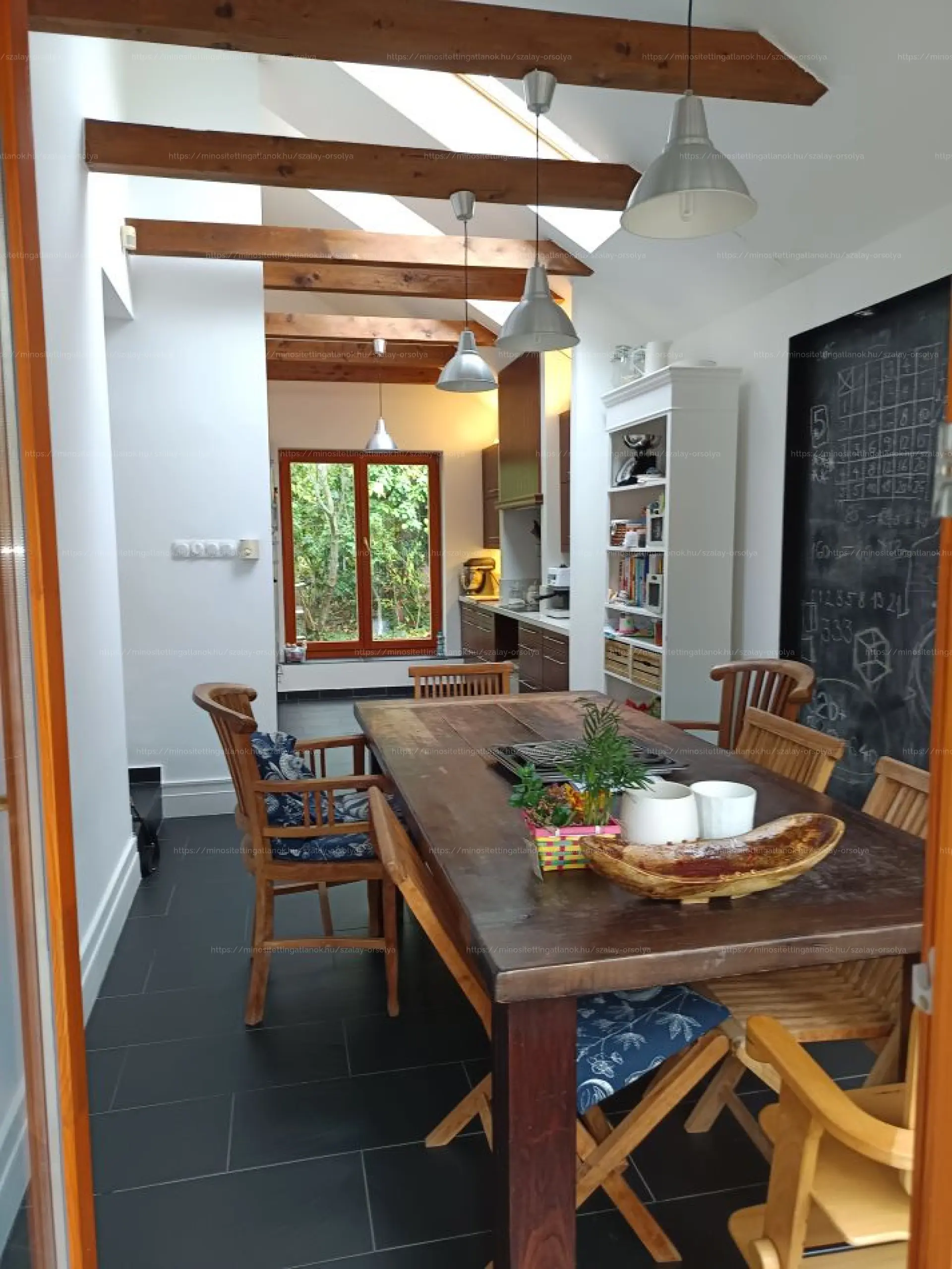 A középső szint 88,49 nm-es, déli fekvésű, fényárban úszó nappali cserépkályhával, terasszal, világos étkezős konyha, egy déli fekvésű hálószoba és kádas fürdőszoba,dolgozó sarok helyezkedik el. Legfelső szint 65,32 nm-es , 2 hálószoba, és egy kádas fürdőszoba található. A fűtést gázkazán biztosítja, alternatív fűtésként pedig fatüzelésű cserépkályha és hűtő-fűtő klíma is használható. Parkolási lehetőség telken belül akár 2 autó is elfér.
