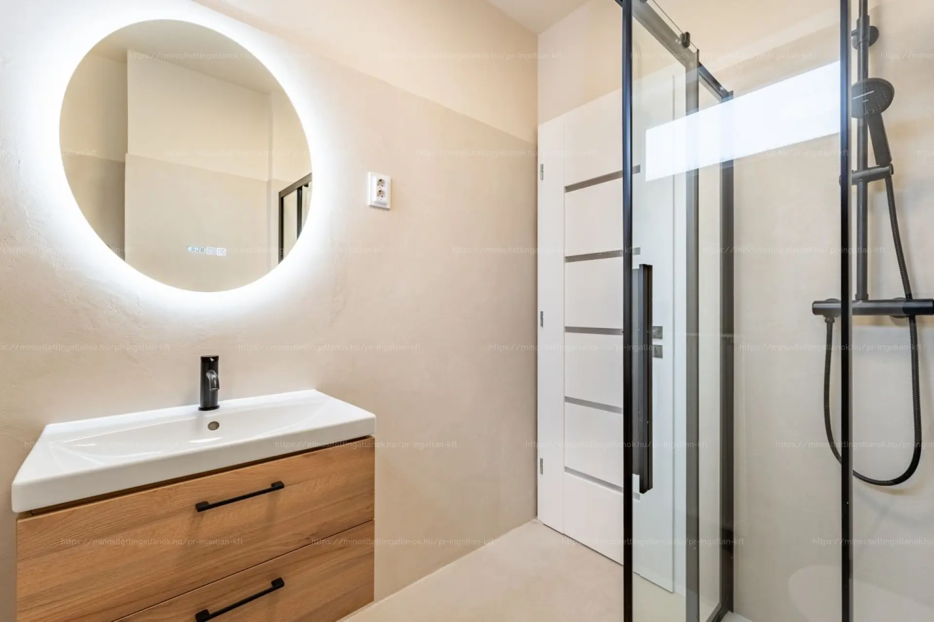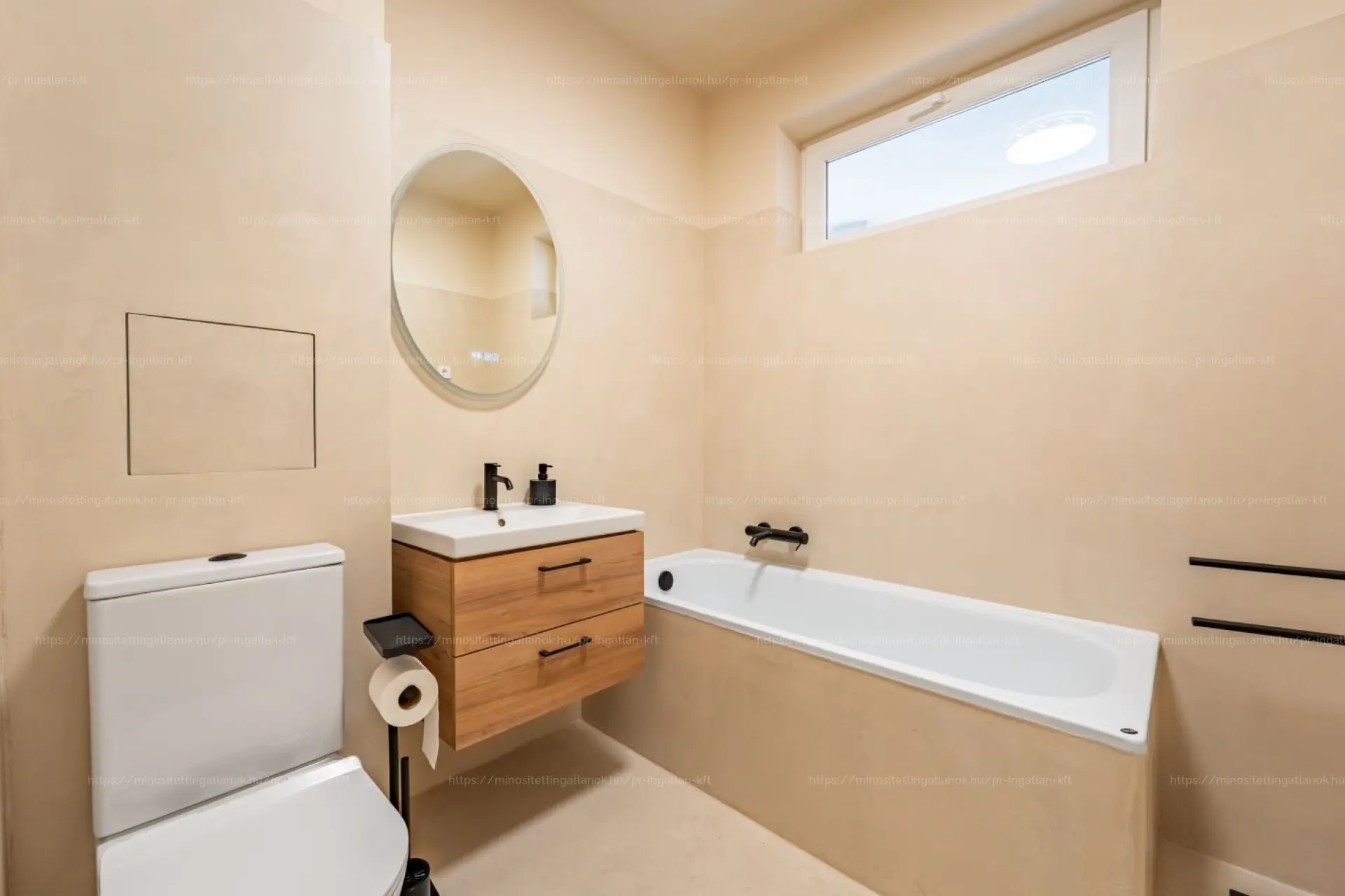 A lakás dupla komfortos, az alsó szinten kádas fürdőszoba, a felső szinten zuhanyzós fürdőszoba szolgálja a mindennapi kényelmet.