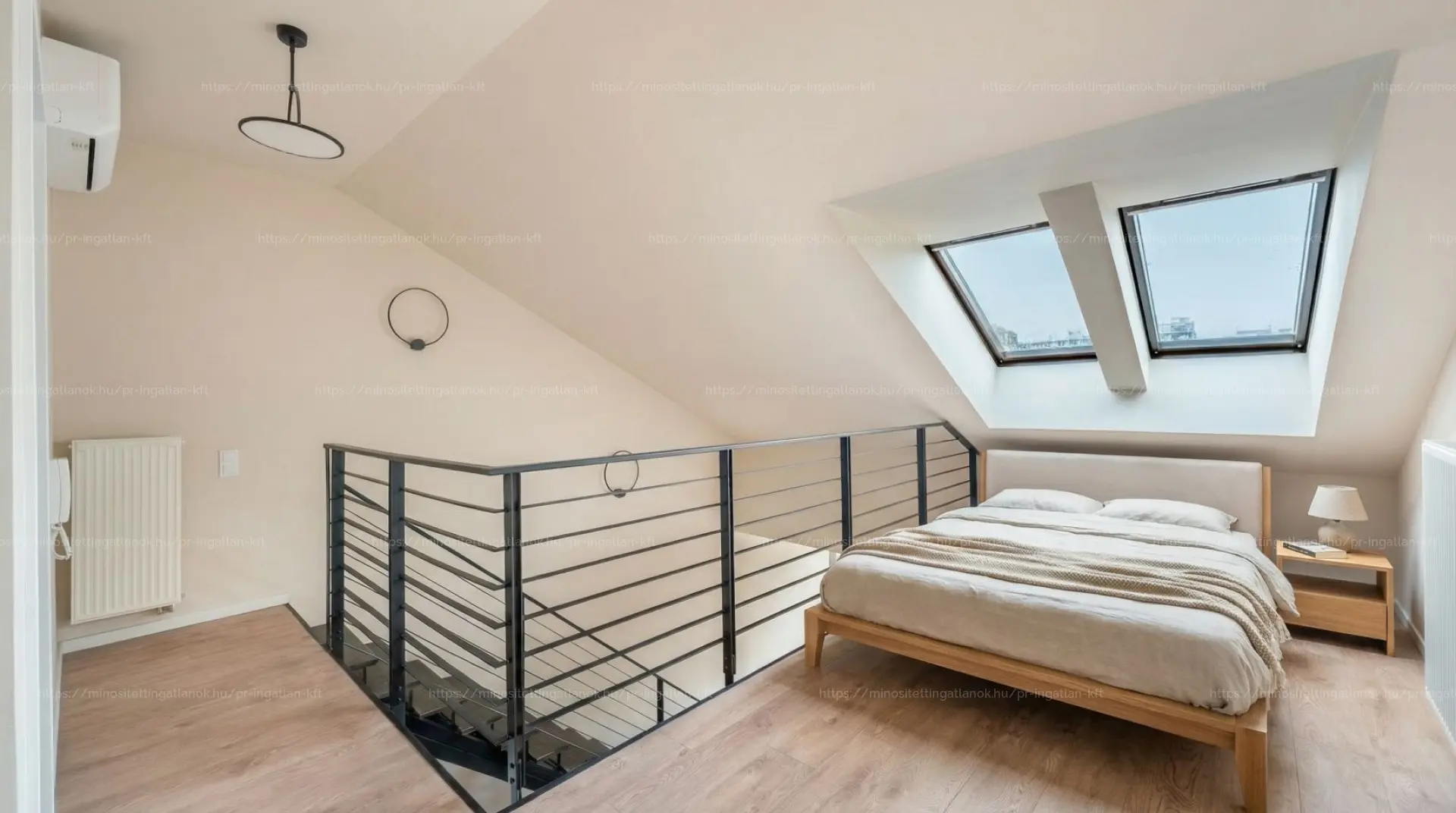 Az ingatlan elosztása kiváló hiszen a tágas nappali mellett két hálószoba került kialakításra, amelyek közül az egyik nyitott jellegű, így dolgozószobaként, vendégszobaként vagy akár gardróbszobaként is tökéletesen használható.