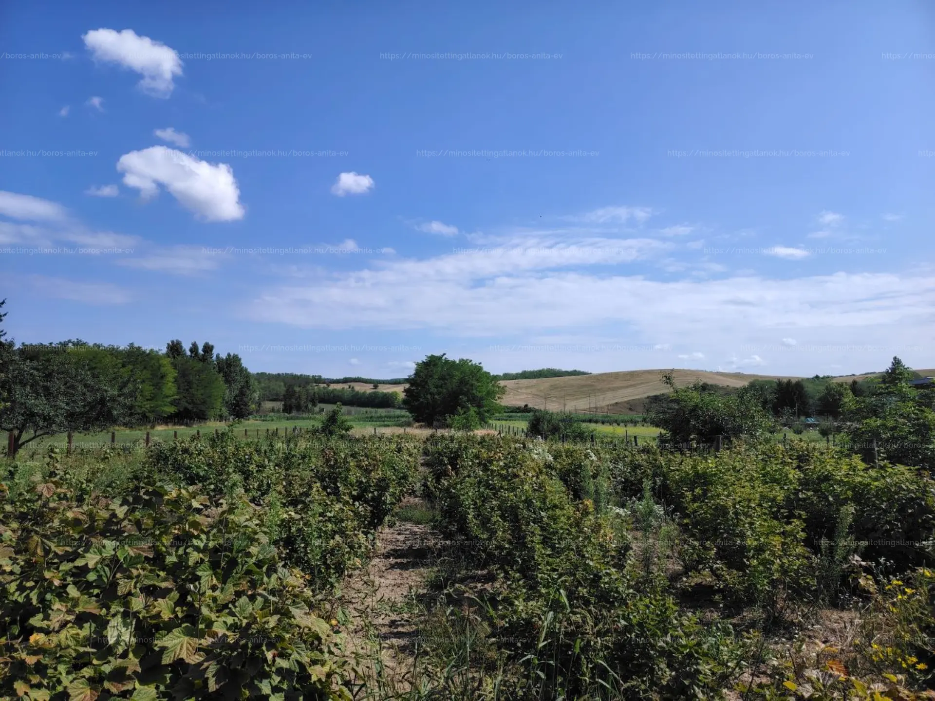 • 🌾 kert: ribizliültetvény, meggyfa, diófa, málna, szeder, eper + fóliasátor