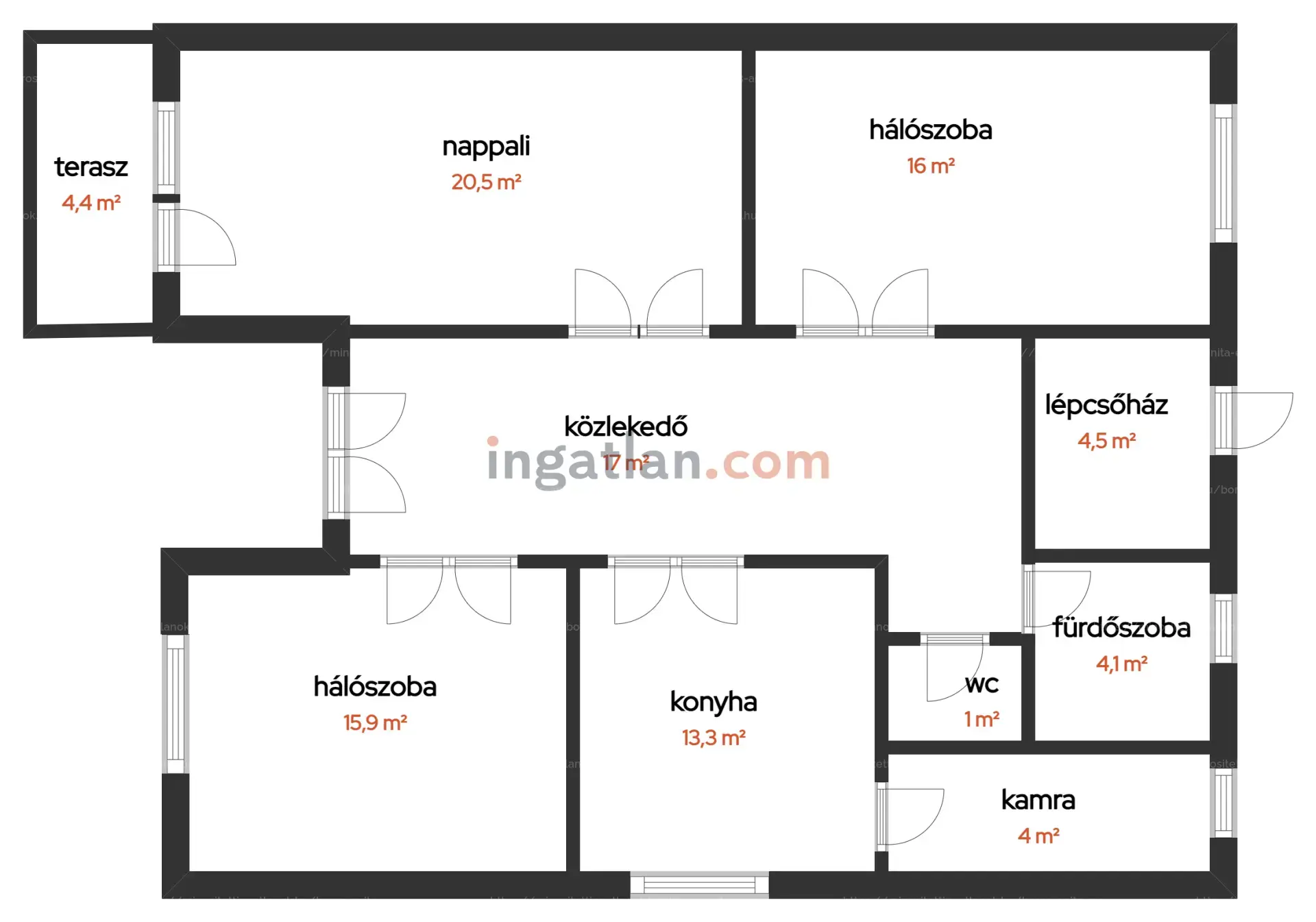 • 🛏️ 2 hálószoba: 16,4 m² és 15,9 m²