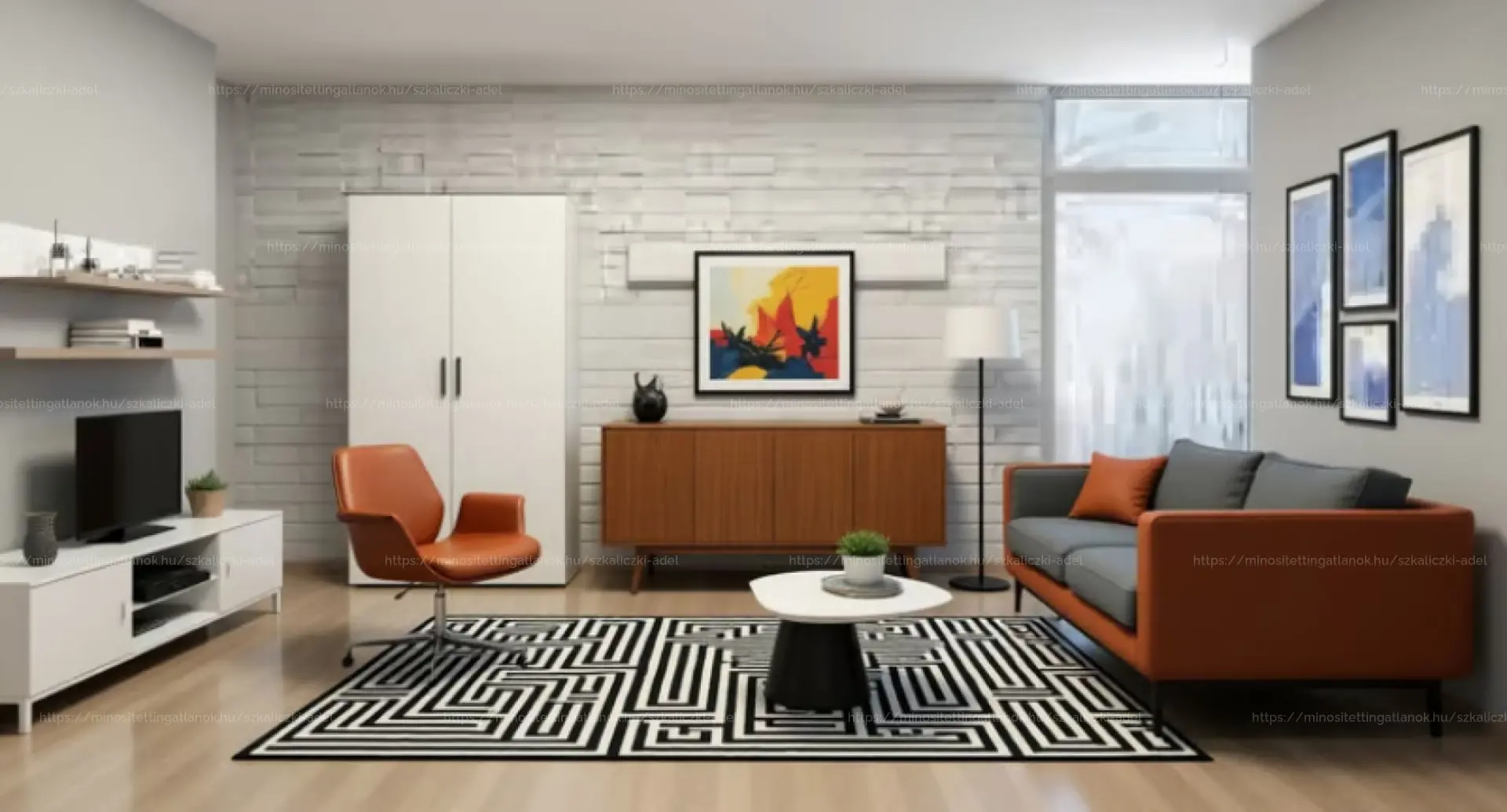 Ezen ingatlan 33 nm-es, egy szobából, egy külön konyhából és egy fürdőből áll, tartozik hozzá egy 18 nm-es terasz, amely nyugatra, a kertre néz. A fürdőben található a tusoló és a WC.