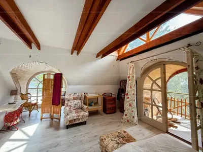 Az emeleti szinten három hálószoba (22, 25 és 14 m²), valamint egy 7 m²-es fürdőszoba található. A szobáknak egészen egyedi hangulatot adnak a zárt erkélyek, melyeken át lenyűgöző panoráma nyílik dél felé, a völgyben elterülő Pécs városára és a Nyugat-Mecsek vonulataira.