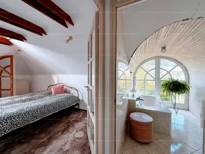 A kertben, a háztól távolabb található még egy összkomfortos, 60 nm-es kerti lak, mely egyaránt alkalmas a gyerekeknek, vendégeknek, vagy akár kerti partik helyszínéül, de akár ki is adható.