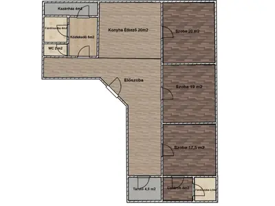 Amerikai stílusú nappali–étkező, gardrób, tároló, kazánház