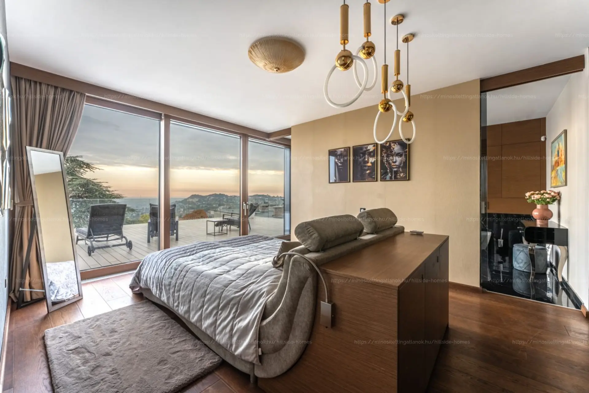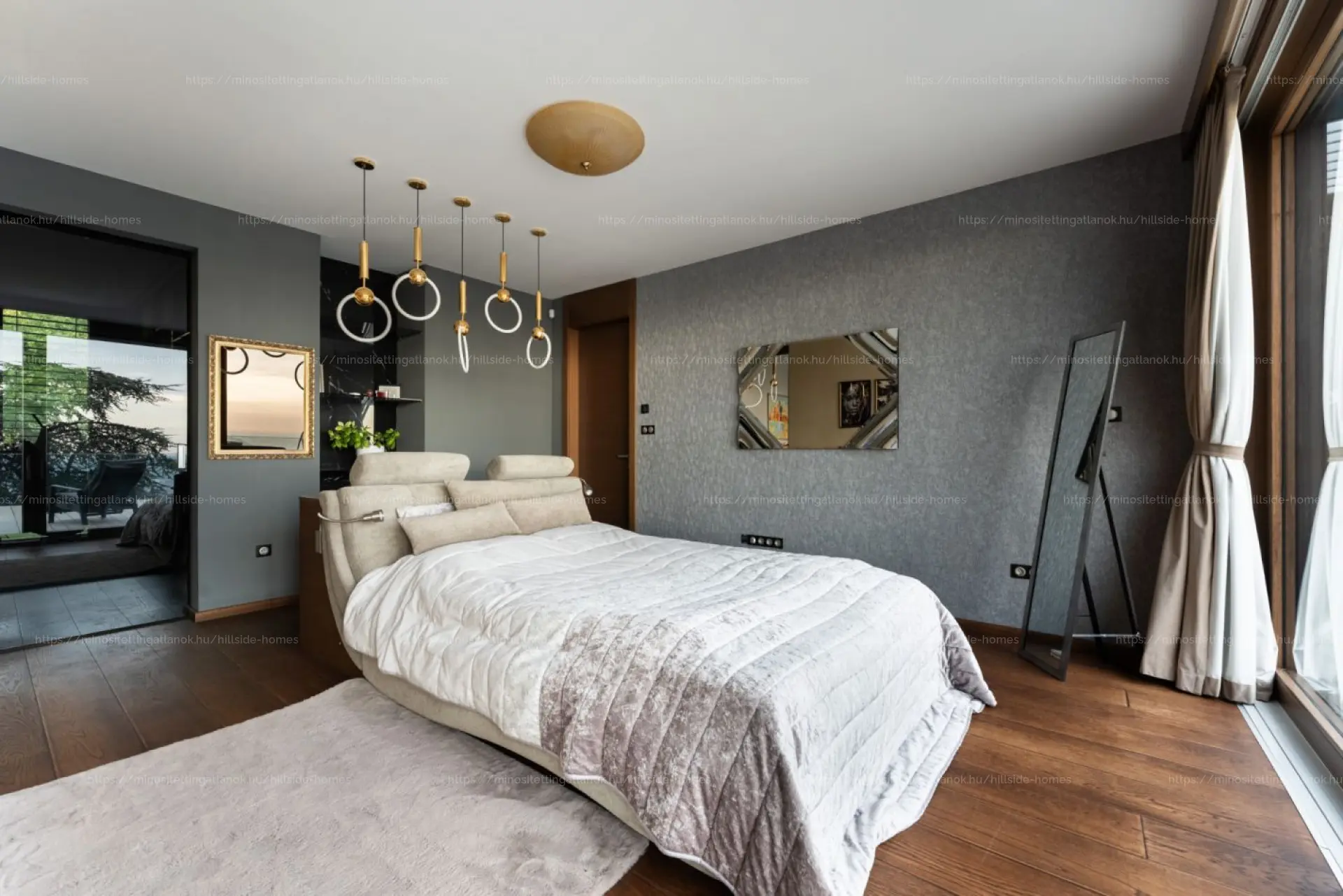 Az emelet a szülői lakosztályé, saját hálóval, gardróbbal, fürdőszobával és kondiszobával. Az alsó szint a gyermekek különálló élettere, saját nappalival, hálószobákkal és fürdővel. Három nagyméretű terasz (25–25–50 m²) kínál tökéletes helyszínt a pihenéshez vagy baráti összejövetelekhez.
