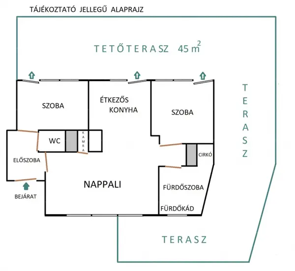 Budapest VIII. kerületében, a Víg utcában, egy 2006-ban épült, modern társasház legfelső, hetedik emeletén kínálunk megvételre egy igazán különleges lakást. Az 56 m²-es, amerikai konyhás nappalival és 1+2 félszobával rendelkező otthon minden helyiségéből közvetlen kilátás, illetve kijárat nyílik a 45 m²-es tetőteraszra. Bár ez a terasz teljes felújítást igényel, ugyanakkor olyan lehetőséget kínál, amelyet kevesen mondhatnak magukénak: itt alakíthatja ki saját városi oázisát, ahol a reggeli kávé vagy az esti borozás közben a város felett élvezheti a nyugalmat. Vendégei garantáltan irigykedni fognak, amikor kilépnek ide, hiszen ilyen panorámát és szabadságot csak keveseknek ad Budapest.