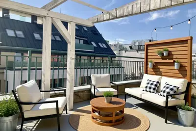 A közlekedés szinte páratlan: a Blaha Lujza térnél az M2-es metró, a Rákóczi téren az M4-es metró, valamint a 7-es buszcsalád, számos további buszjárat és a 4-es, 6-os villamos perceken belül elérhető. Ez a lakás nemcsak otthon, hanem életstílus: a belváros nyüzsgése egy karnyújtásnyira van, miközben a tetőterasz nyugalmat és privát menedéket kínál.