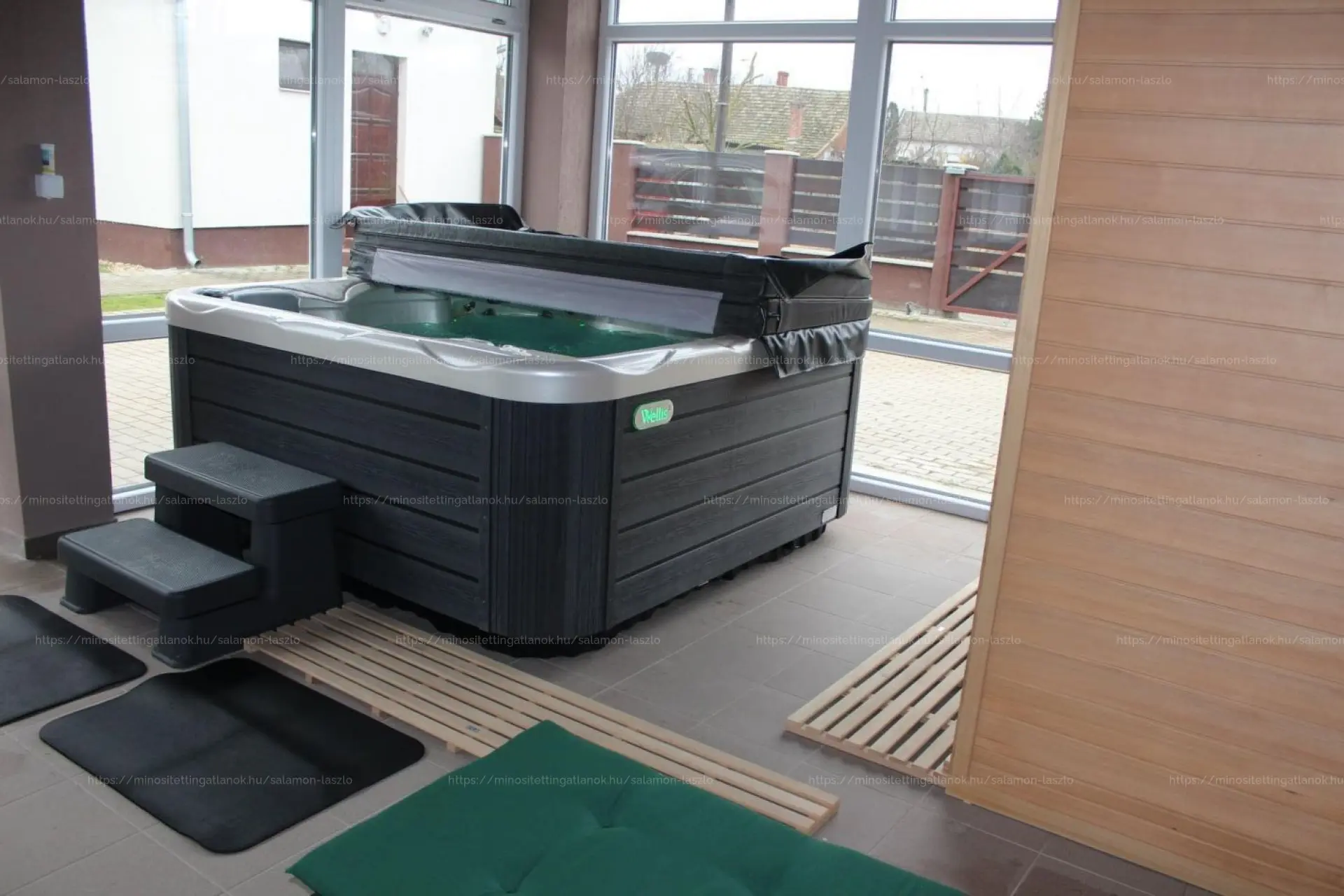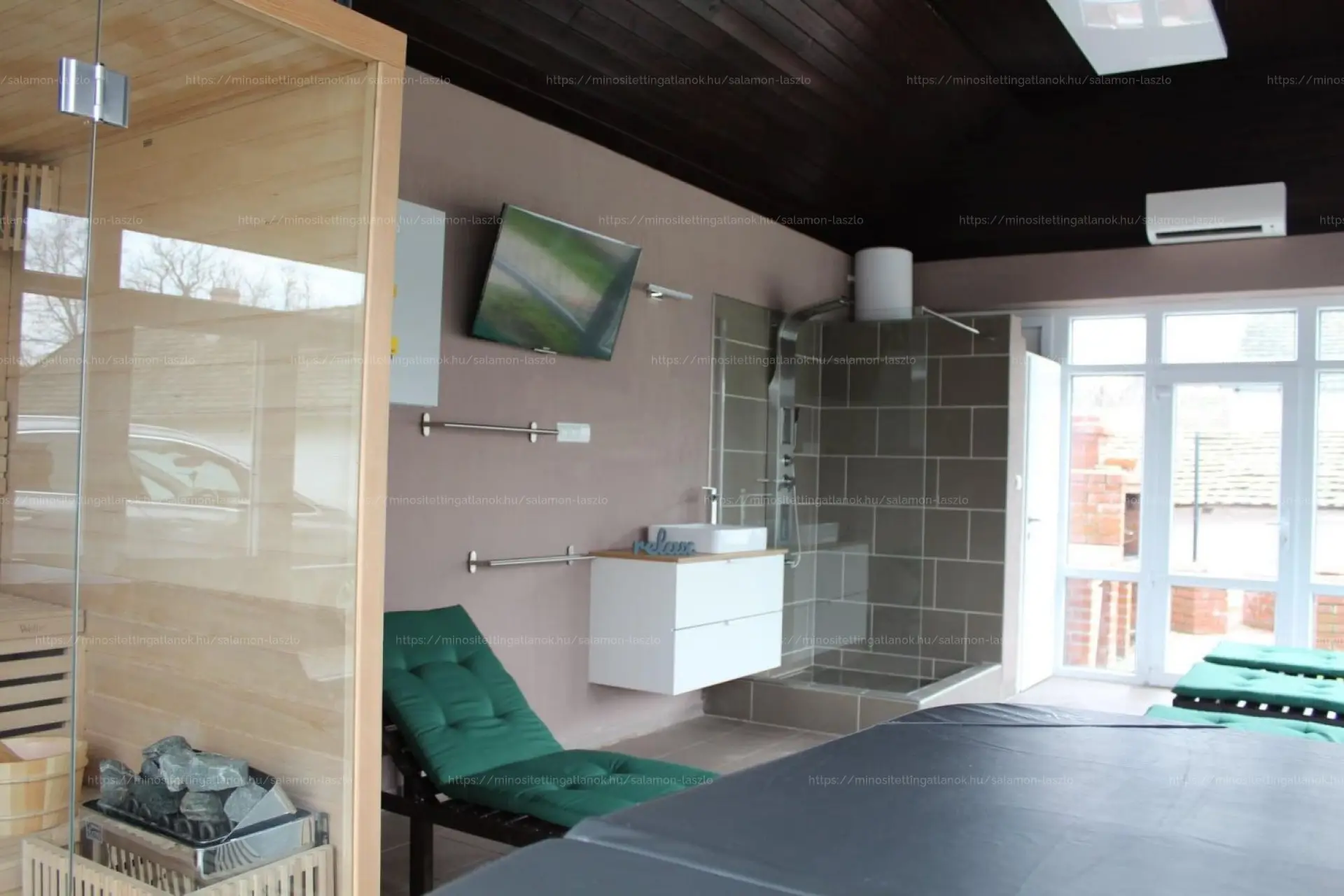 KÜLTÉRI adottságok: az udvarban 3 személyautó parkolása biztosított, a többi rész füvesített és egy külön FÚRT KÚTBÓL öntözhető. Szalonnasütő és grillező kialakításra került. WELLNESS részleg: 5 személyes jakuzzi és 3 személyes finn szauna áll a vendégek rendelkezésére.