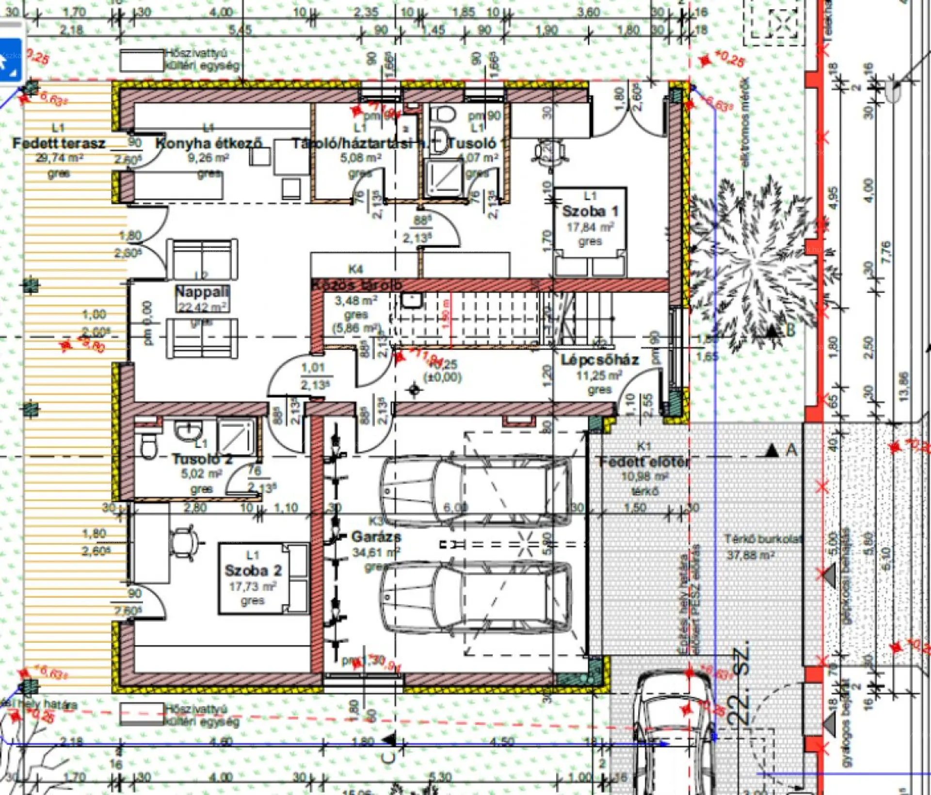 A házban 3 szinten 3 lakás kerül kialakításra, a fűtést-hűtést hőszivattyú biztosítja, az "okos téglából" épült falakon 16 cm-es grafit szigetelést helyeznek el. Kiváló hő és hangszigetelésű 3 rétegű nyílászárókat építenek be, elektromos redőnnyel és szúnyoghálóval szerelve. A ház várható energetikai besorolása AA++