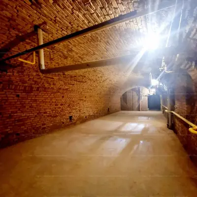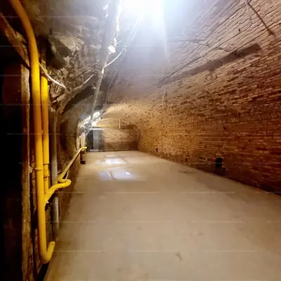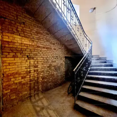 Az épület kapuján belépve egy zöld oázissal díszített udvaron haladunk keresztül, majd egy rendezett lépcsőházon át jutunk le a pince szintre. Itt az előtér és egy nagyobb helyiség felújítását már megkezdték (vakolat leszedése, tégla megtisztítása, betonozás), amit a vevő igénye esetén a teljes területen kiviteleznek.
