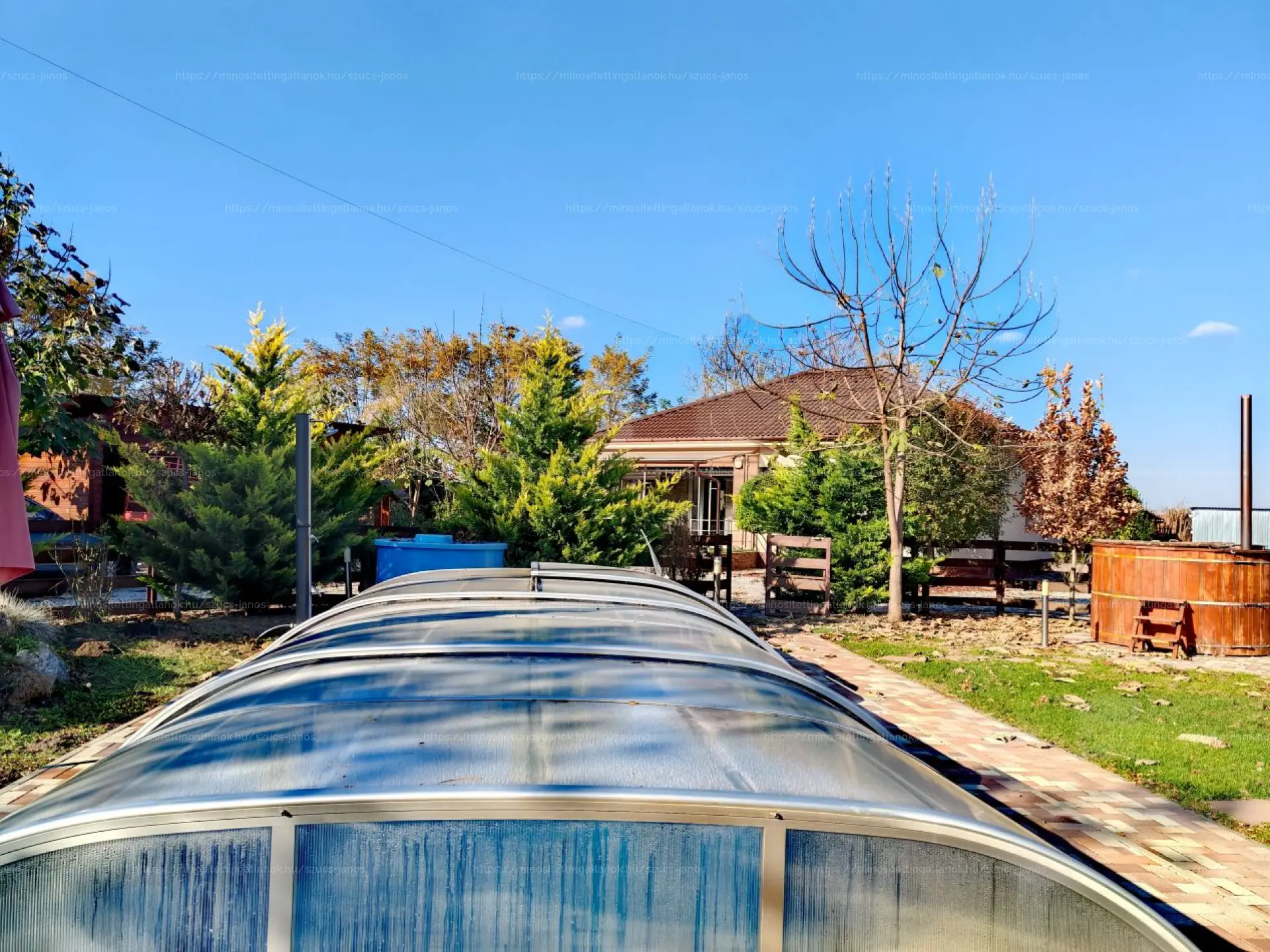 Eladó egy csodálatos épületkomplexum lakóingatlannal, medencével, szaunákkal, dézsával, edzőteremmel, legénylakással és konténerházakkal!