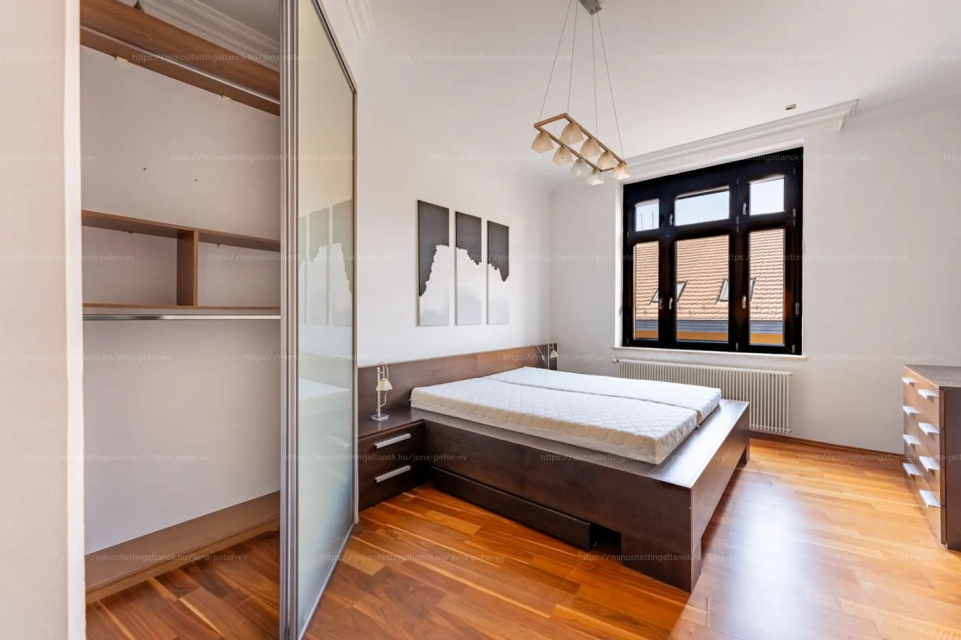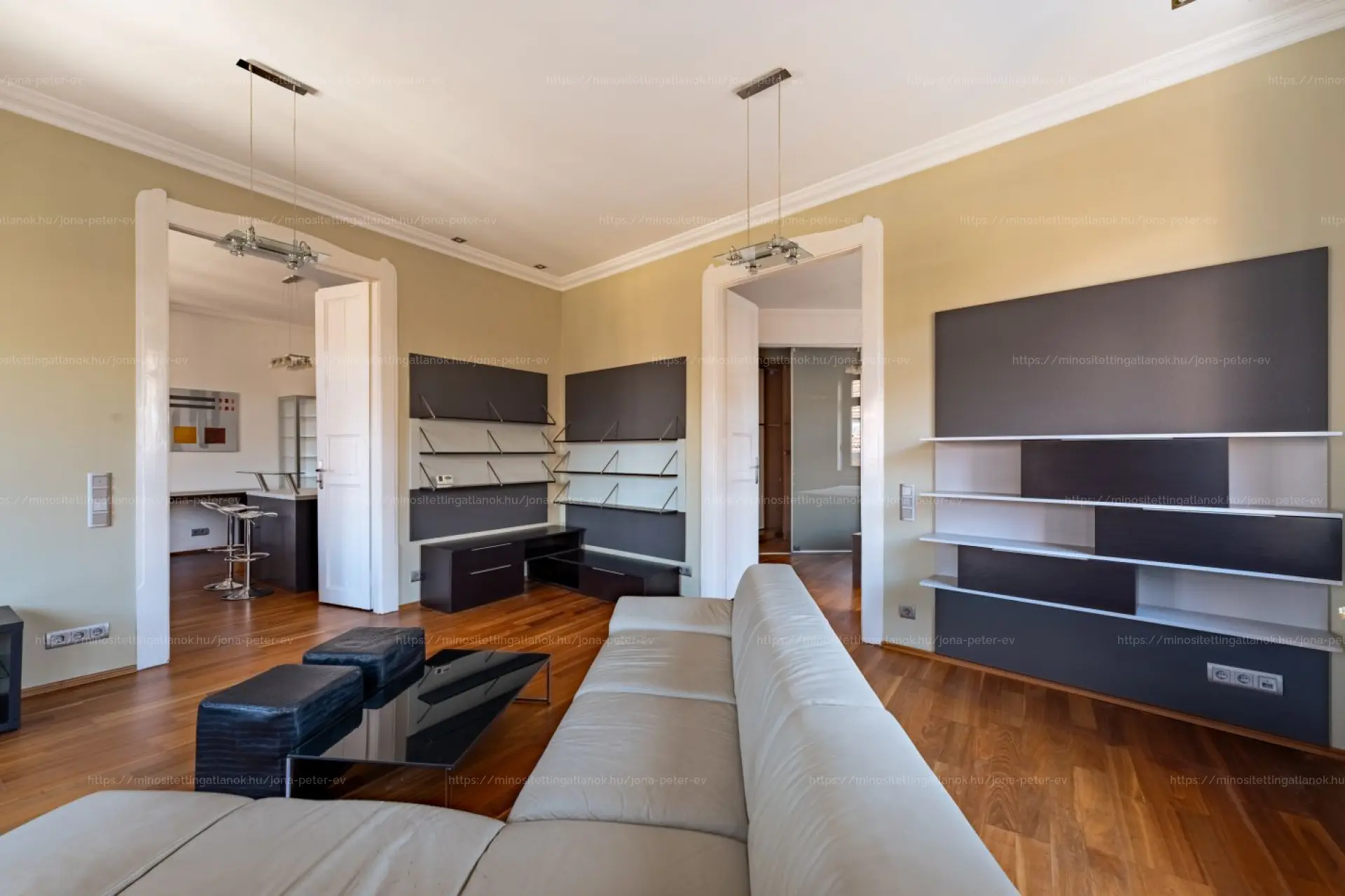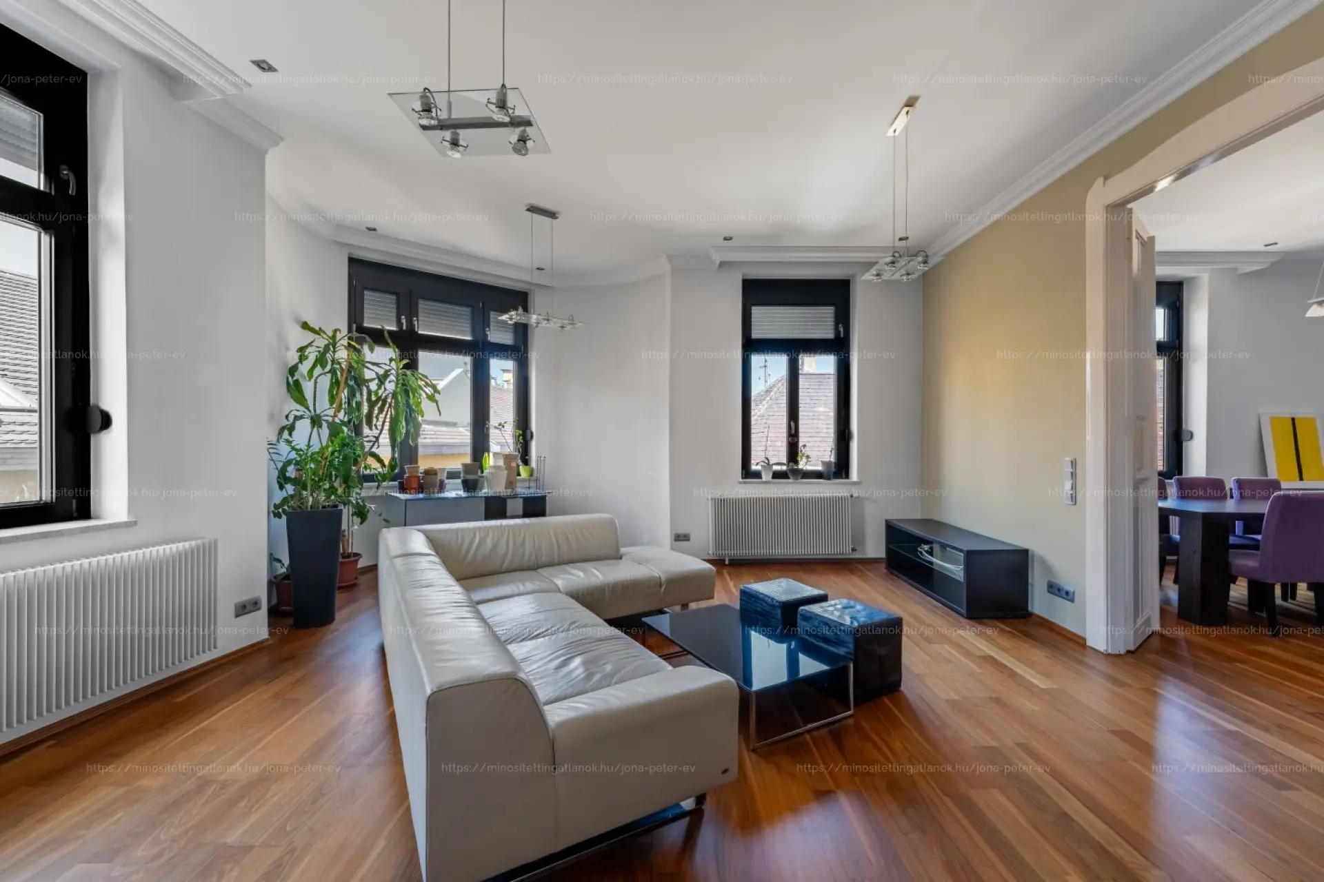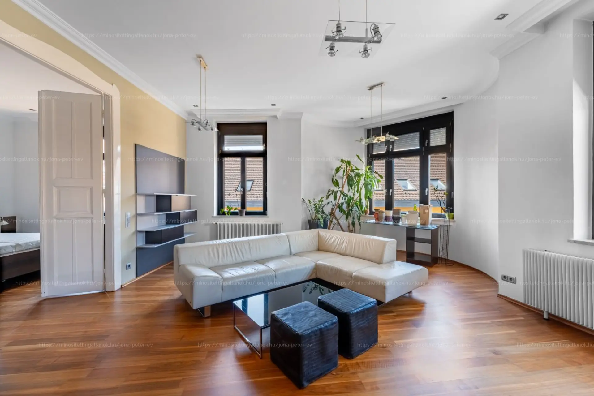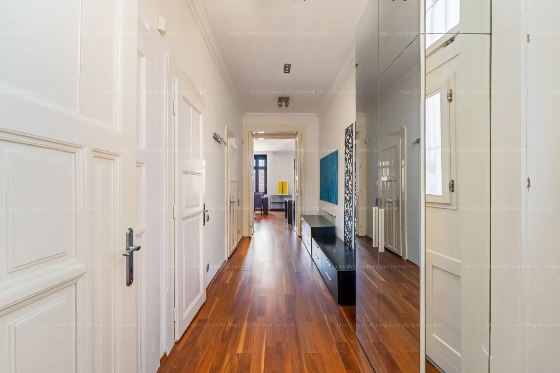 Eladó sorba került ez a felújított, 3. emeleti, 113 négyzetméteres, tágas, 3 szobás (nappali és 2 háló), gardróbos, tárolós, külön toalettes, napfényes lakás a Bakáts tér sarkánál egy rendezett nagypolgári épület legfelső emeletén.