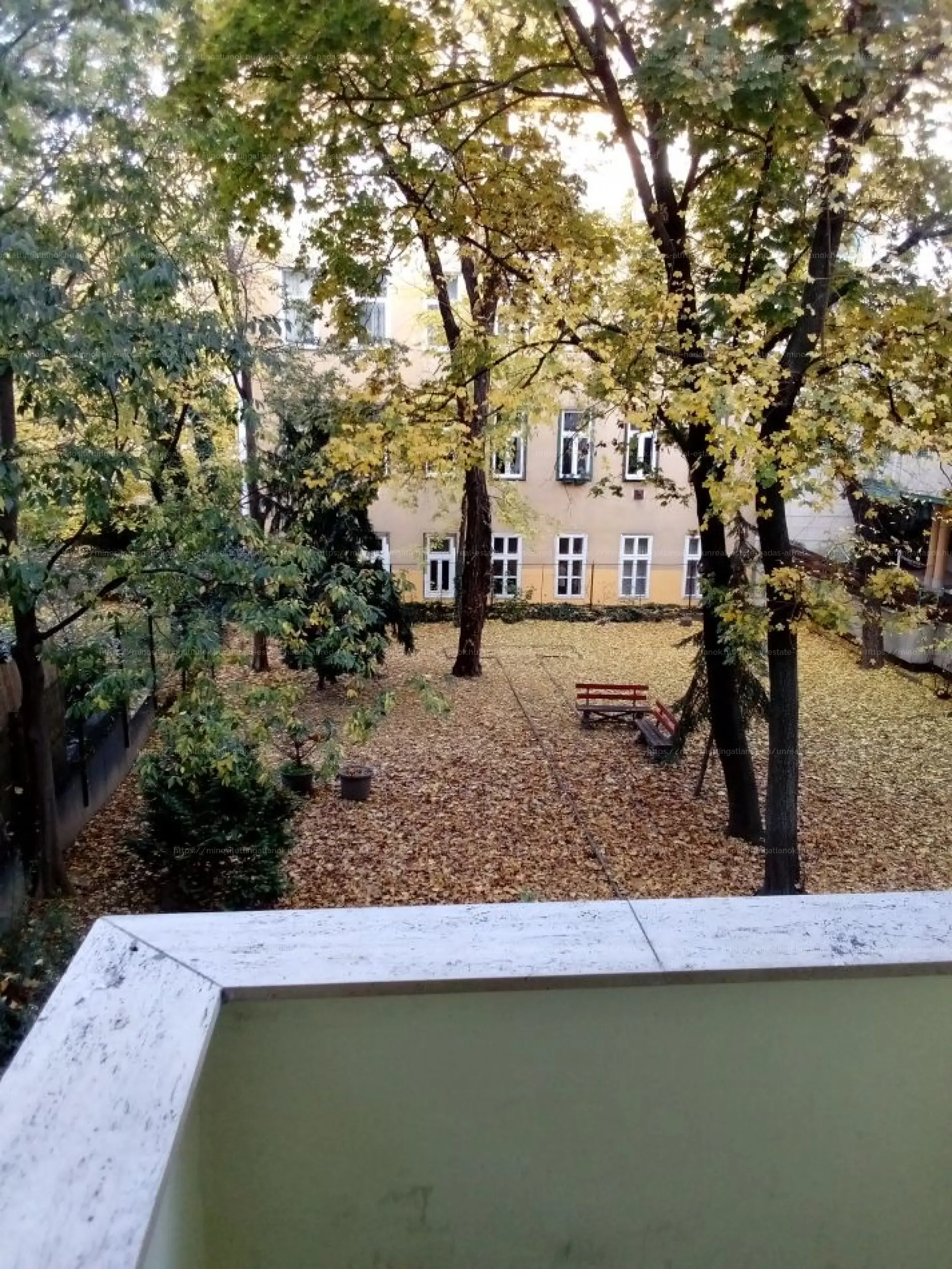 A ház nagy, fás belső kerttel rendelkezik, amely csendet és zöld környezetet biztosít a belváros szívében.