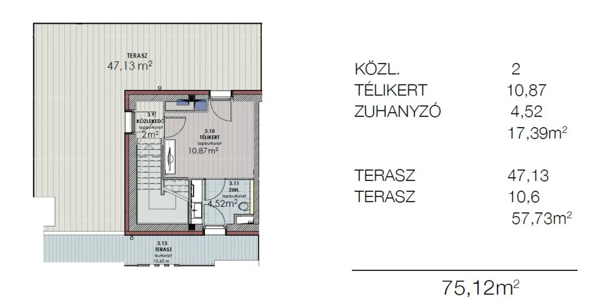 •60 m² napozóterasz és 15 m² panorámás erkély