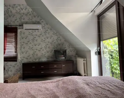 - Felső szint: WC, fürdőszoba, közlekedő, padlásfeljáró, 3 db félszoba, 4 m2 erkély.
