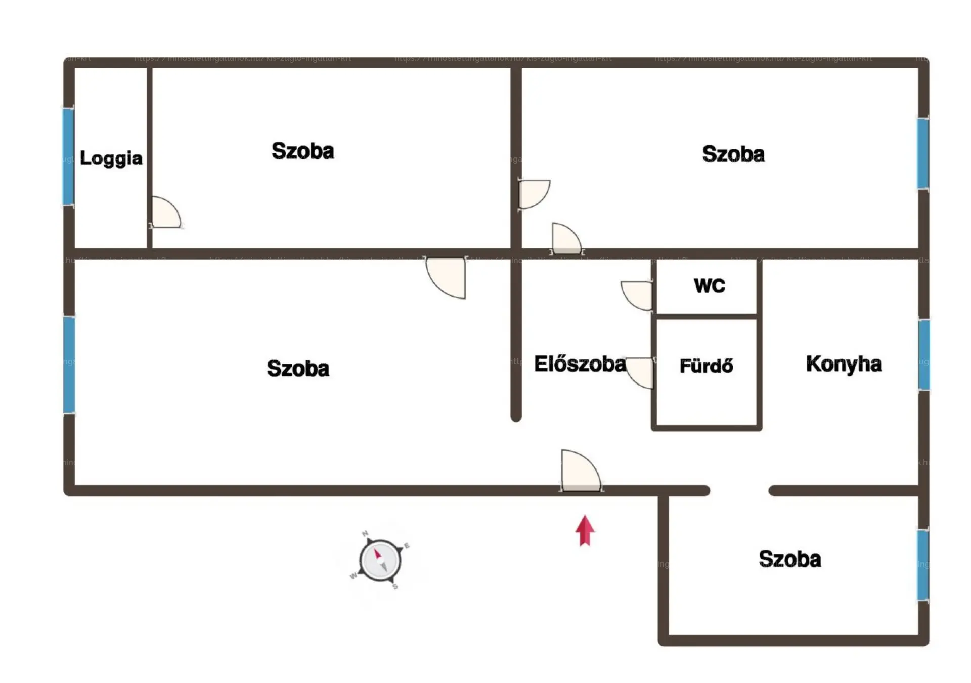 A 2+2 fél szoba, a tágas előtér, közlekedő, konyha, loggia kényelmes életteret biztosít.